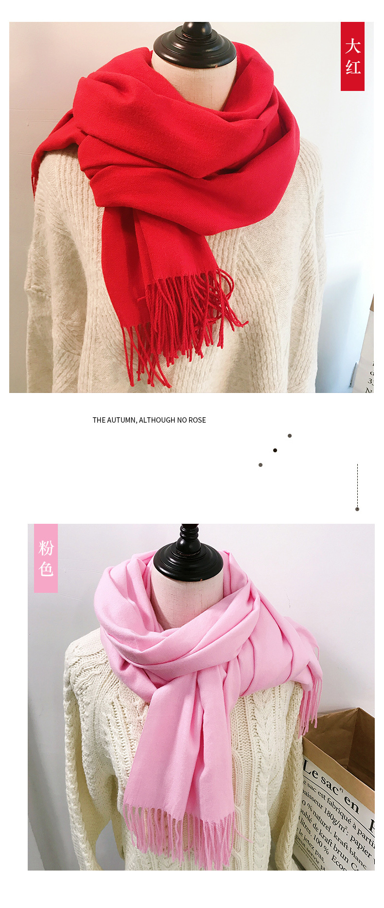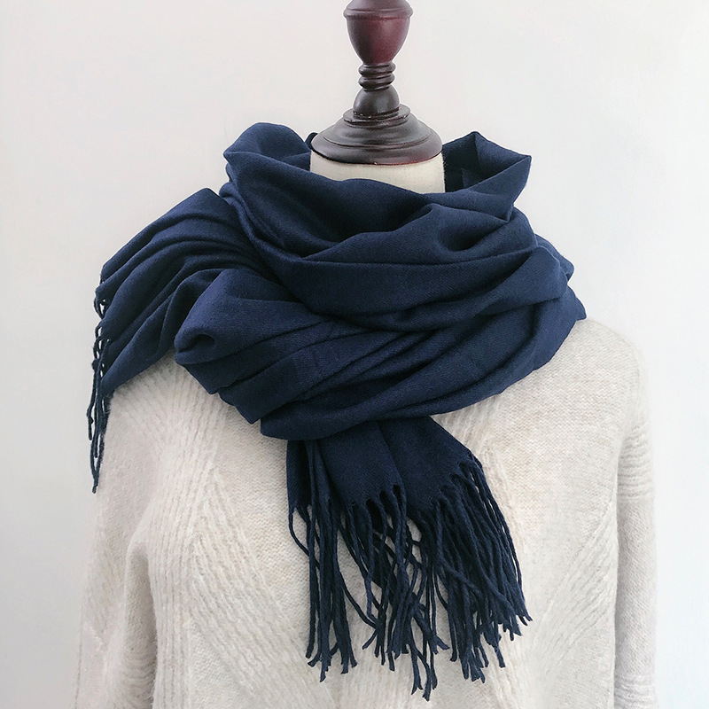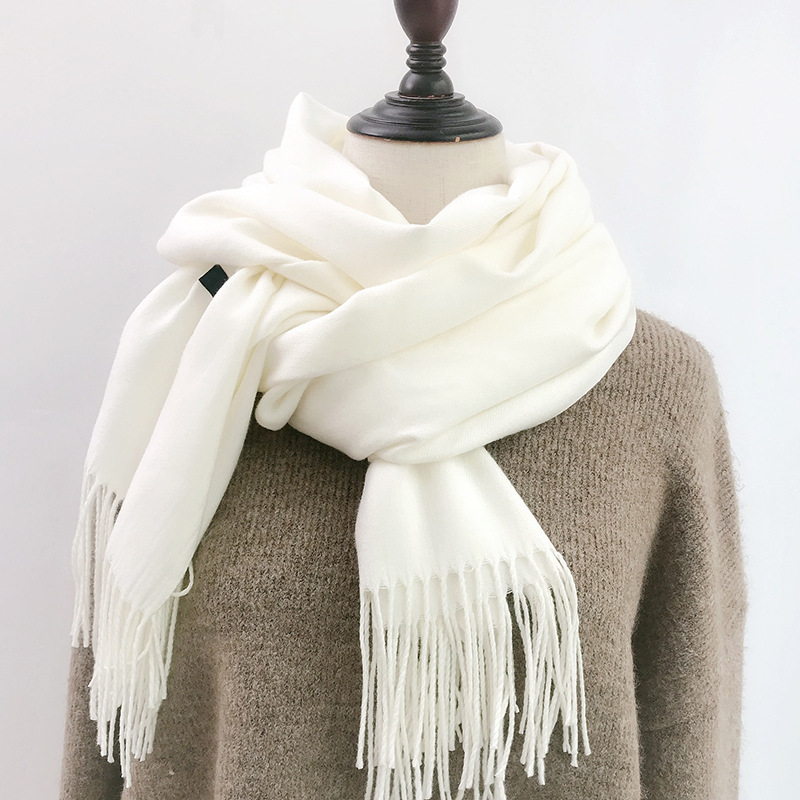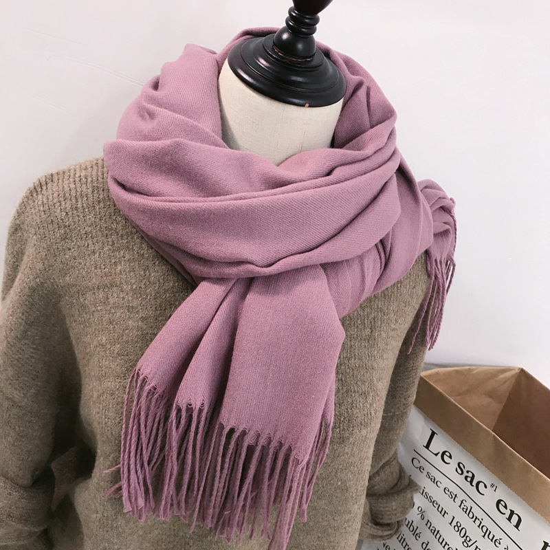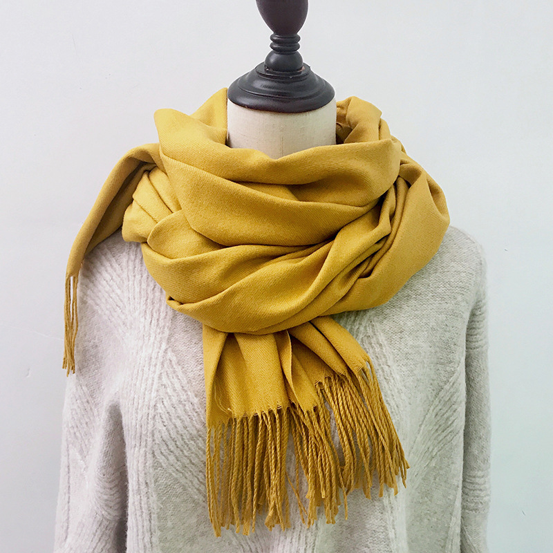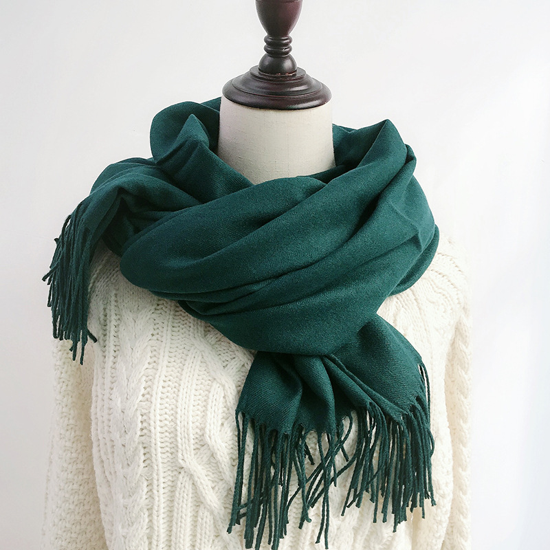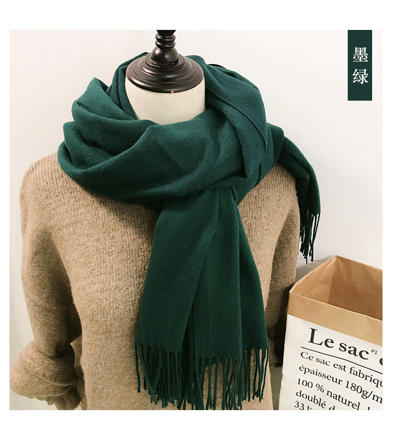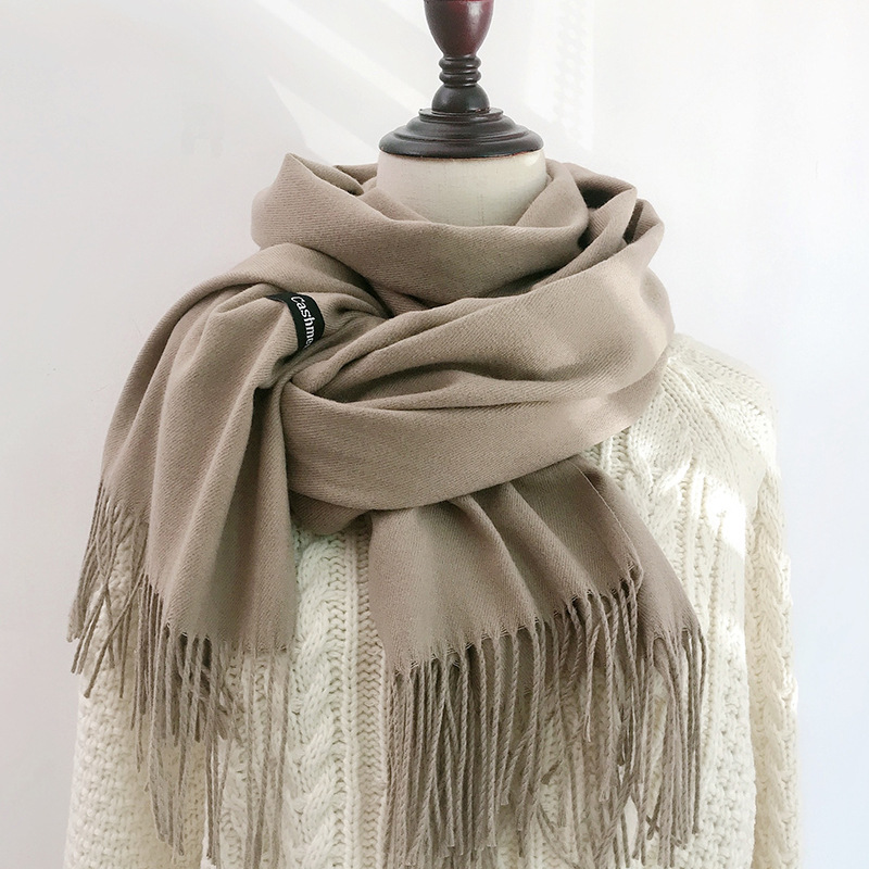 레드 스카프 중국 레드 로고 자수 인쇄 솔리드 컬러 모조 캐시미어 가을, 겨울 한국 스타일 여성용 다용도 숄 하이 엔드스토어 가기