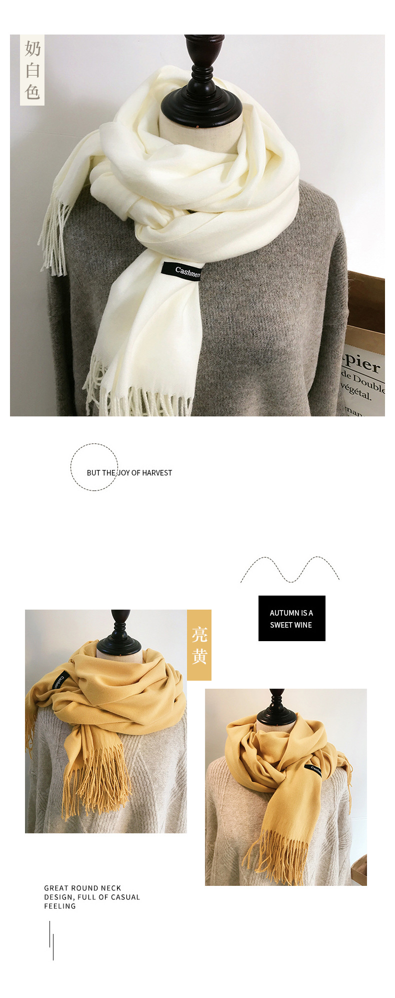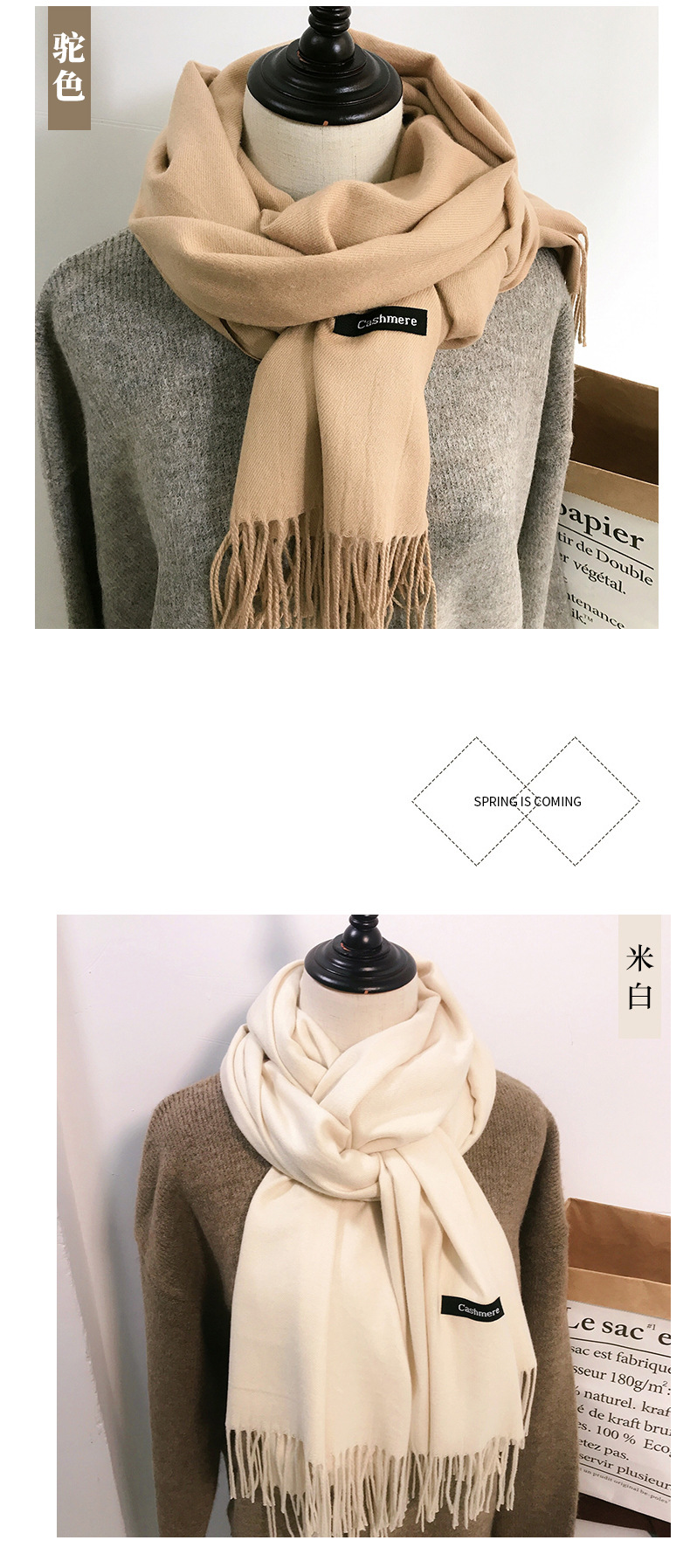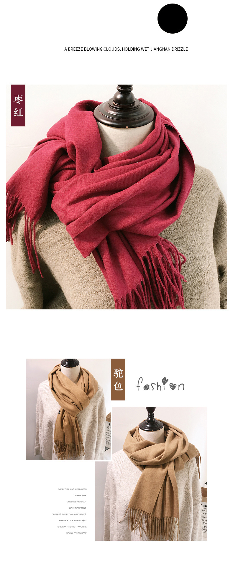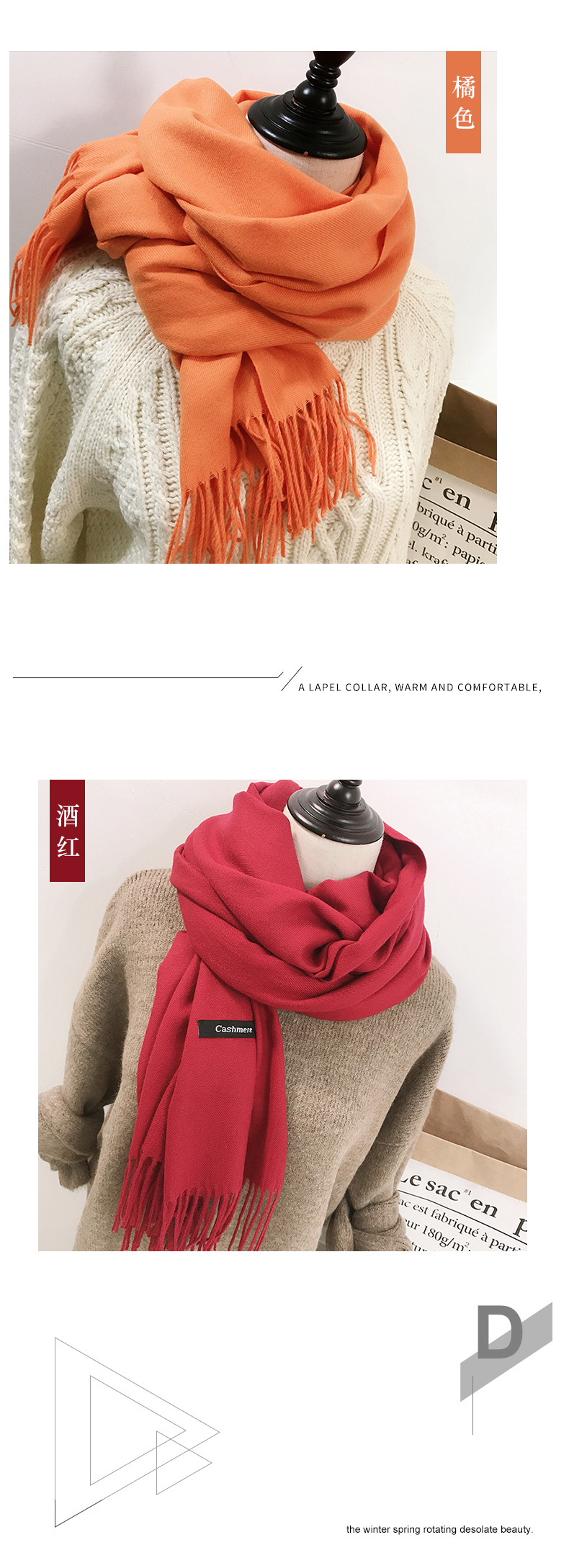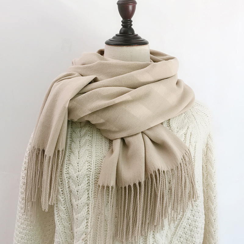 레드 스카프 중국 레드 로고 자수 인쇄 솔리드 컬러 모조 캐시미어 가을, 겨울 한국 스타일 여성용 다용도 숄 하이 엔드스토어 가기