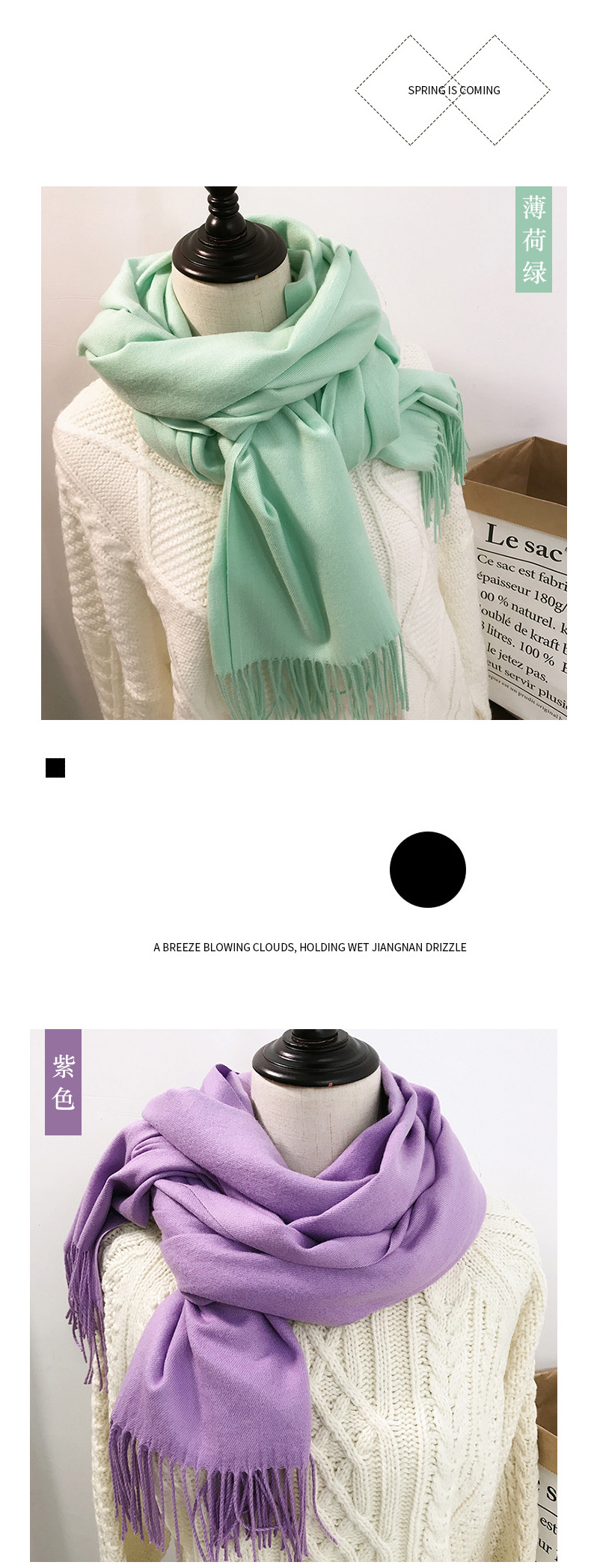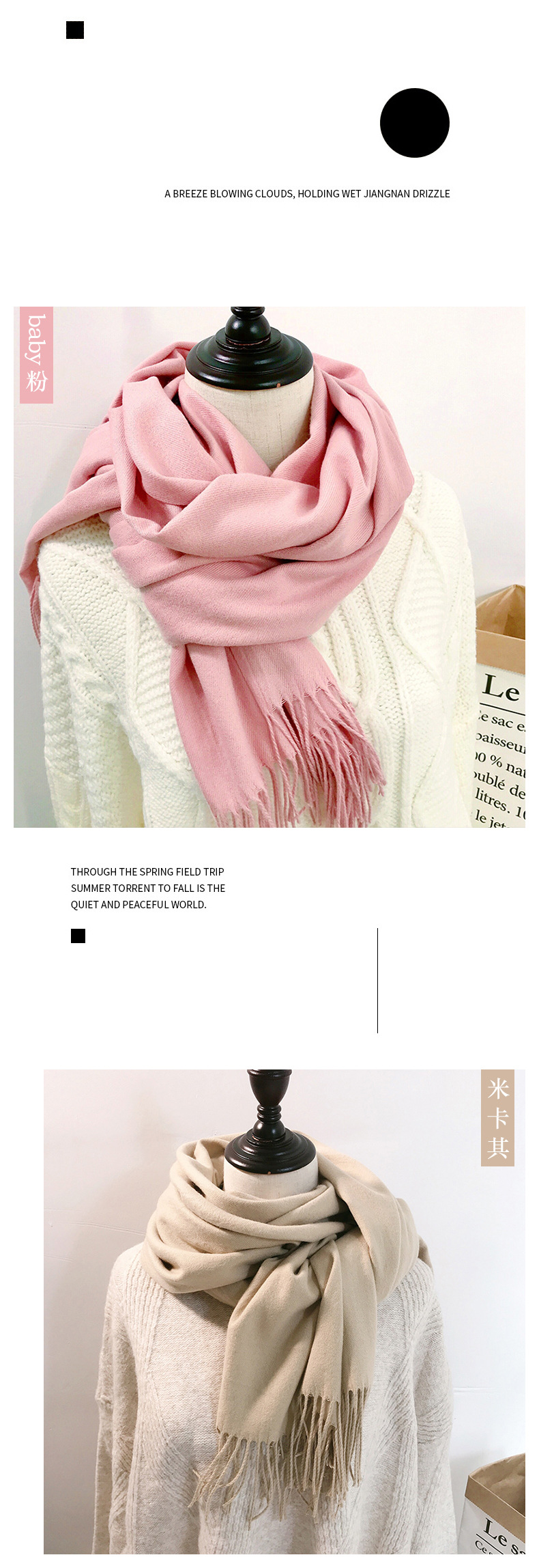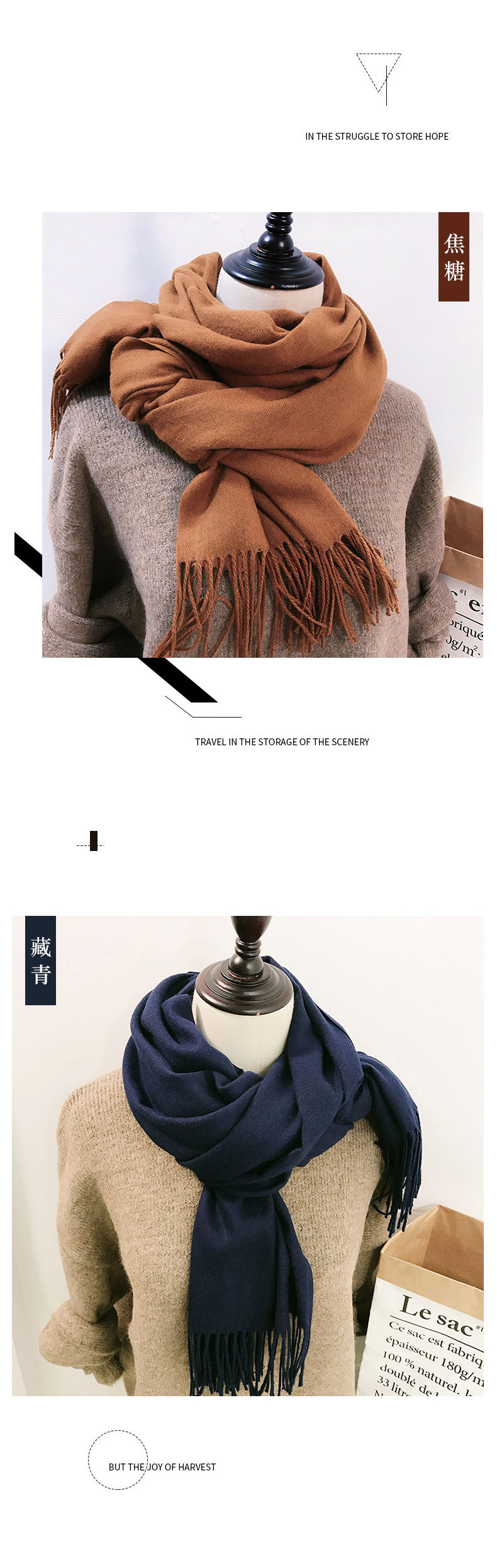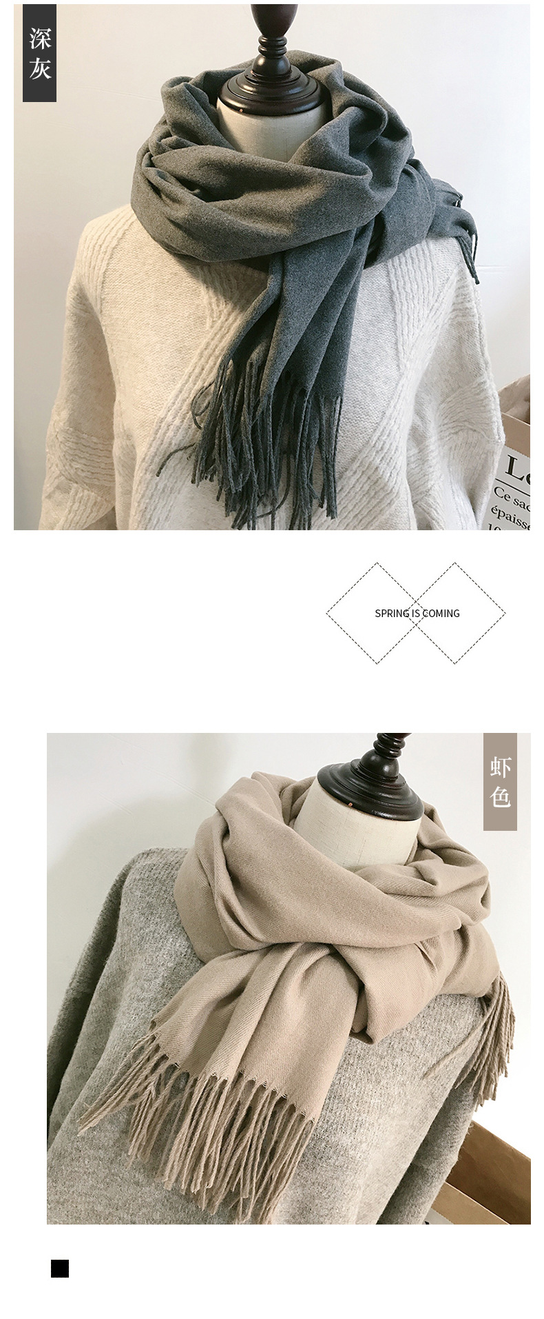 레드 스카프 중국 레드 로고 자수 인쇄 솔리드 컬러 모조 캐시미어 가을, 겨울 한국 스타일 여성용 다용도 숄 하이 엔드스토어 가기