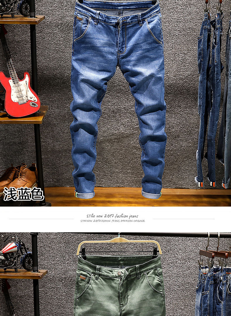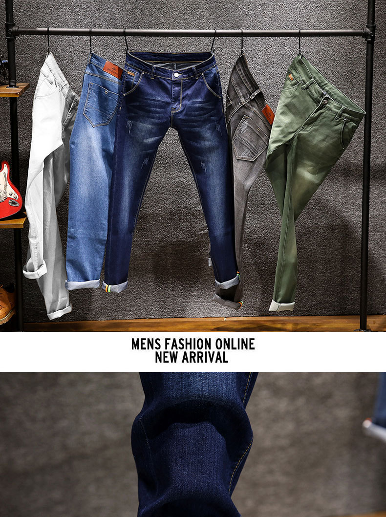 대외 무역 공장 공급 남성 데님 바지 남성용 슬림 탄성 레깅스 젊은 남성 바지 도매스토어 가기