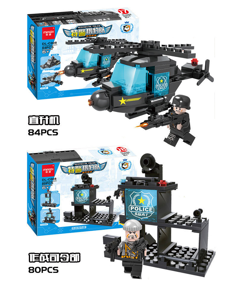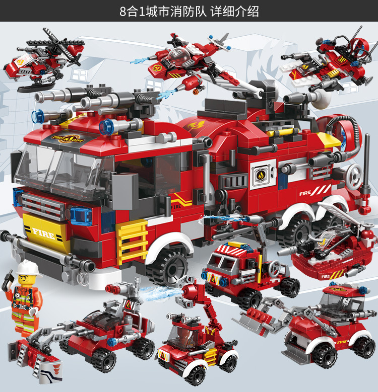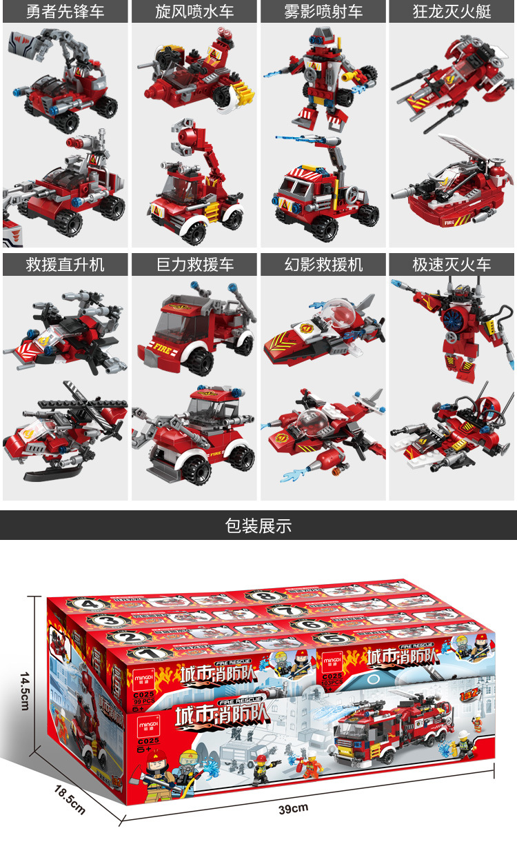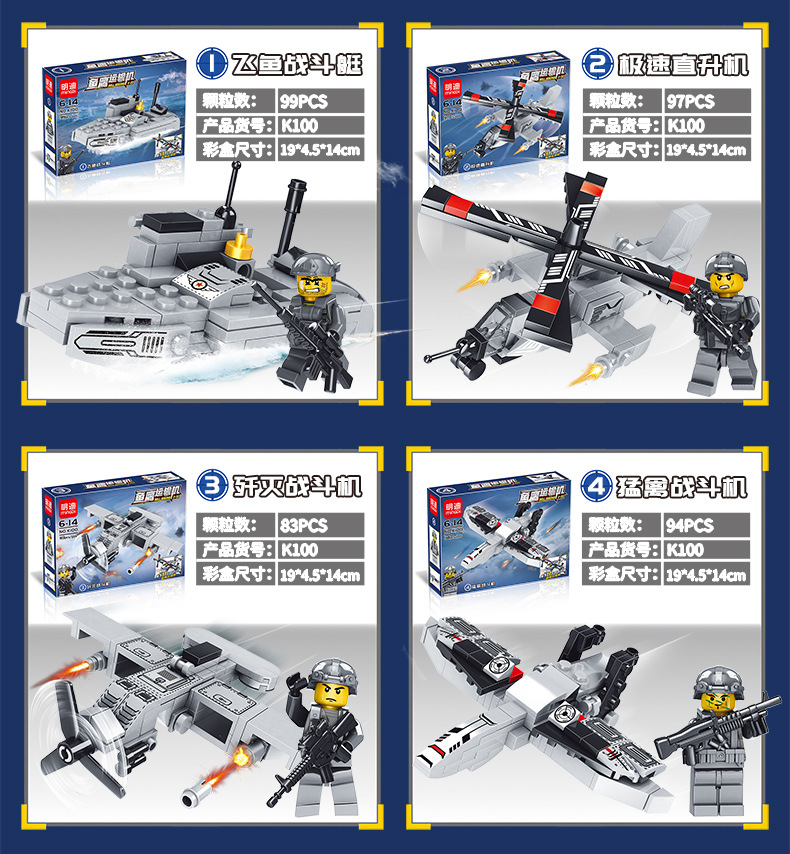 레고 6-in-1 디스플레이 박스와 호환되는 조립식 군사, 소방, 우주 어린이 교육용 블록 장난감