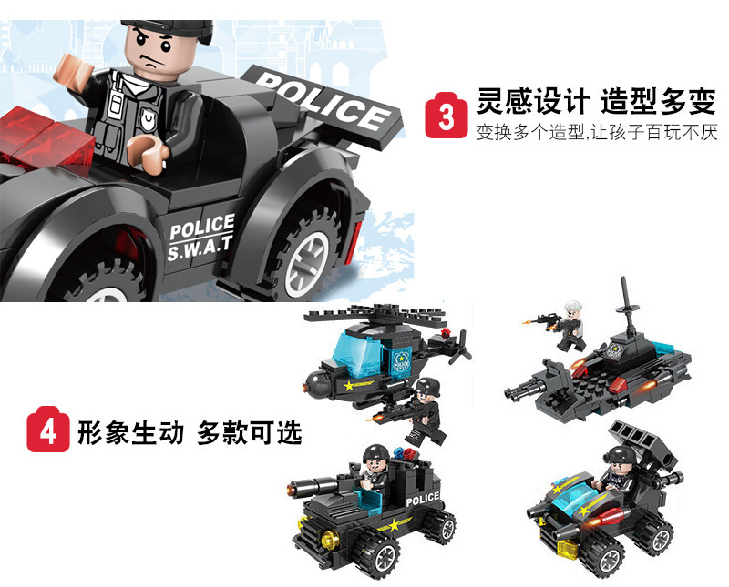 레고 6-in-1 디스플레이 박스와 호환되는 조립식 군사, 소방, 우주 어린이 교육용 블록 장난감스토어 가기