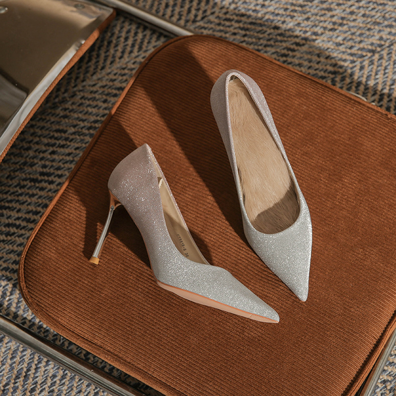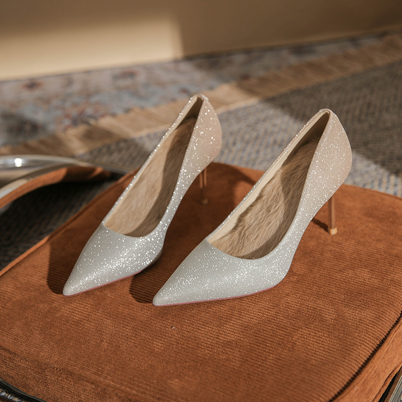 8818 프렌치 스타일 여성용 하이힐 2026 신상 그라데이션 우아한 웨딩 슈즈 섹시한 뾰족코 얇은 굽 얕은 구두