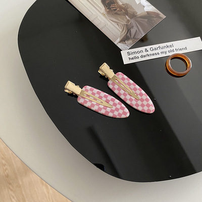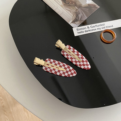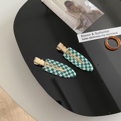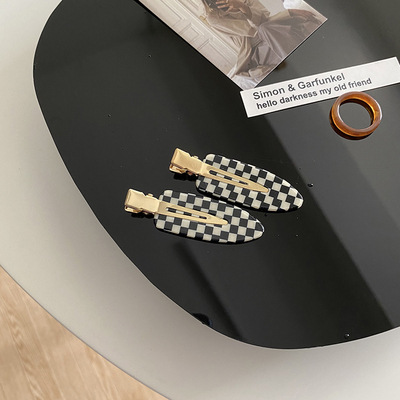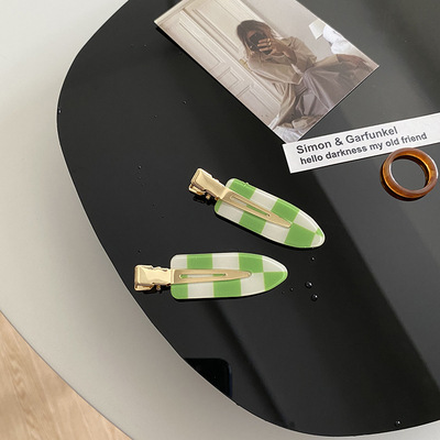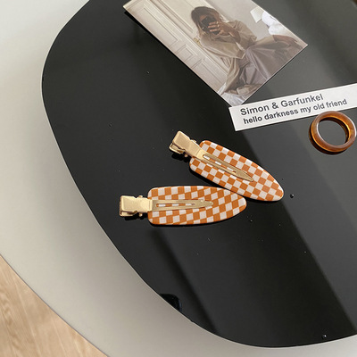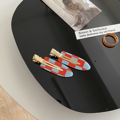 일본과 한국의 컬러풀한 체커보드 머리핀, 데일리 심플 아세테이트 천격자 무봉제 머리핀, 사이드 클립, 앞머리 클립, 헤어 액세서리
