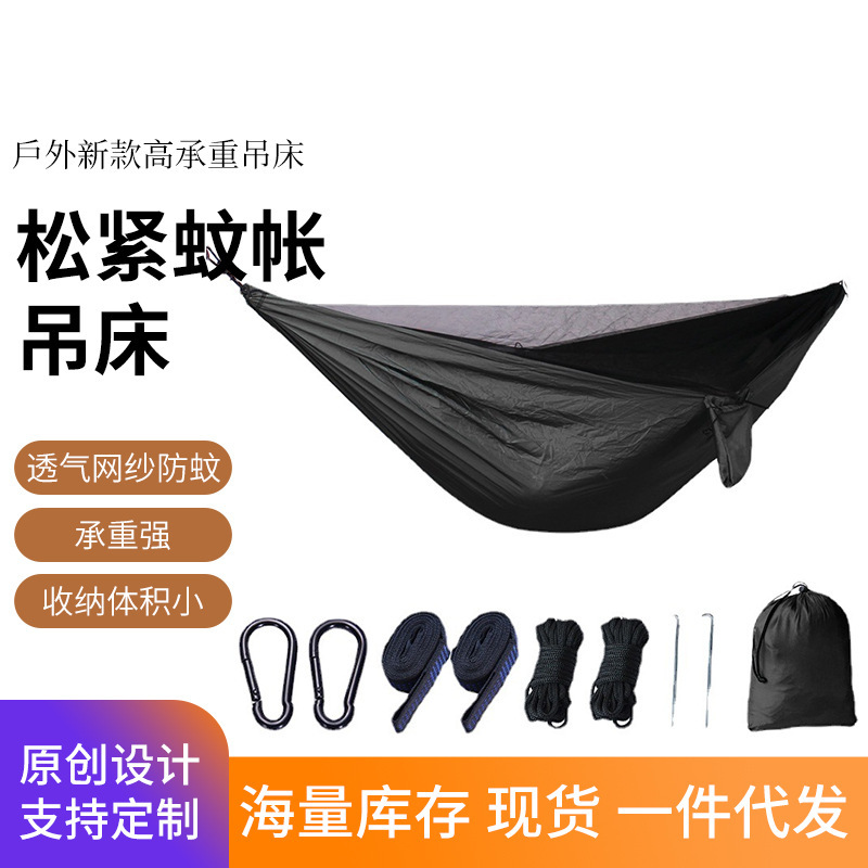 크로스 보더 전용 야외 초경량 나일론 더블 해먹 낙하산 천 전복 방지 탄성 밴드 암호화 모기장 해먹