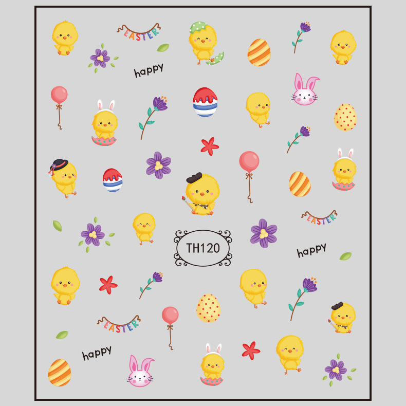 강도 공장 사용자 정의 치킨 부활절 네일 아트 보석 도매 네일 아트 스티커 작은 데칼 네 잎 클로버 네일 스티커스토어 가기