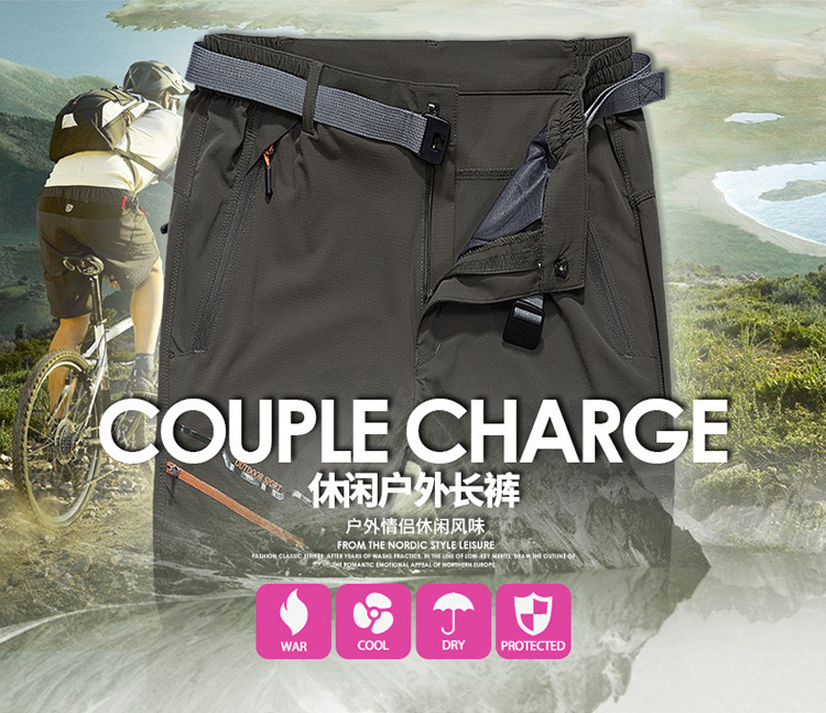 厂家货源夏季户外快干裤男女大码弹力裤薄登山裤运动长裤17001