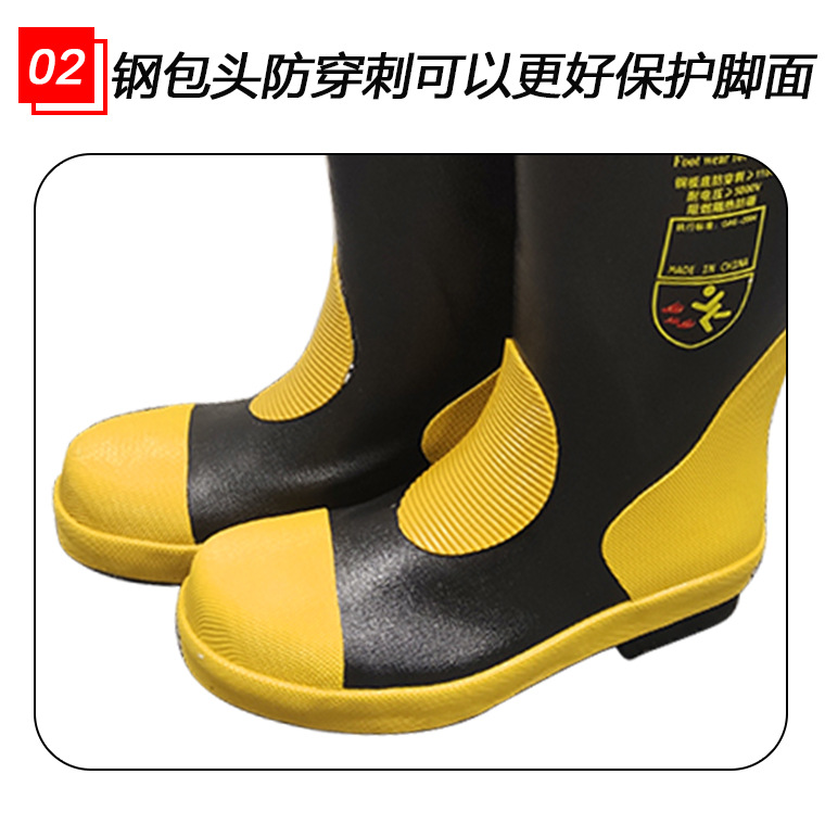 02 방화 장화 레인 부츠 소방 부츠 화재 난연 방지 스매싱 방지 펑크 방지 신발 밑창 (스틸 플레이트 레인 부츠 포함)