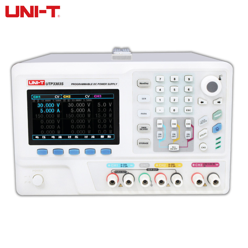 Unilide UTP3303S DC 규제 전원 공급 장치 3 개의 프로그래머블 선형 디지털 DC 전원 공급 장치 3A0-30V
