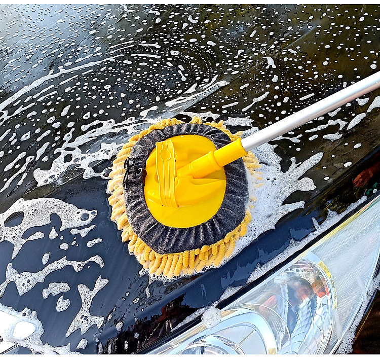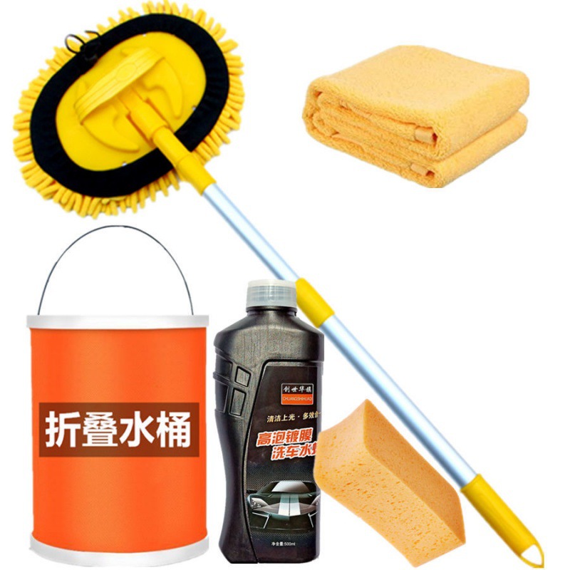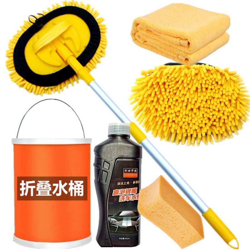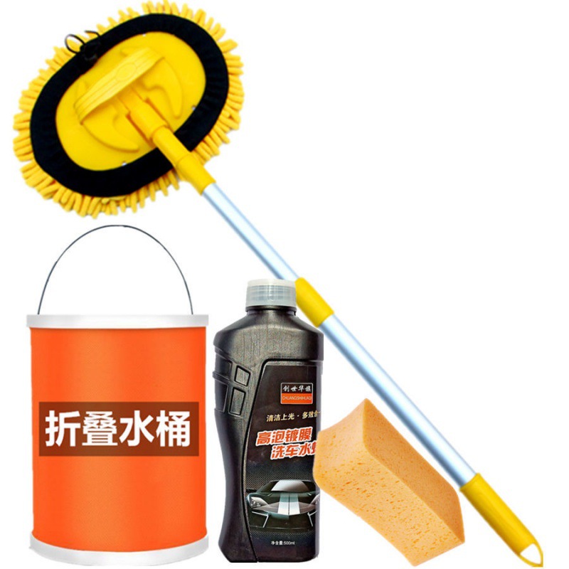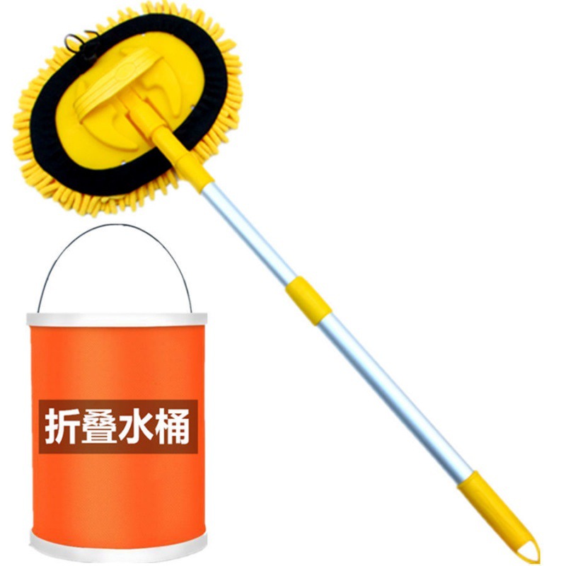 • 셔닐 세차 브러시 + 접이식 양동이 + 세차액 * 2 개의 텔레스코픽 셔닐 [스테인리스 막대 걸레]]