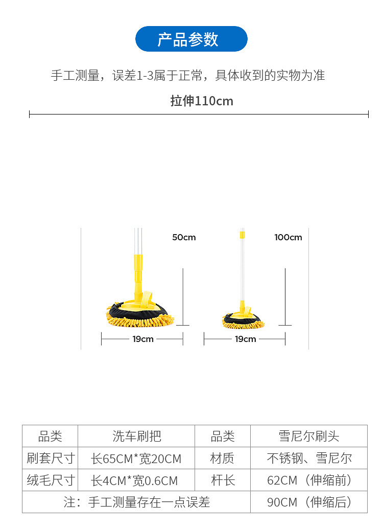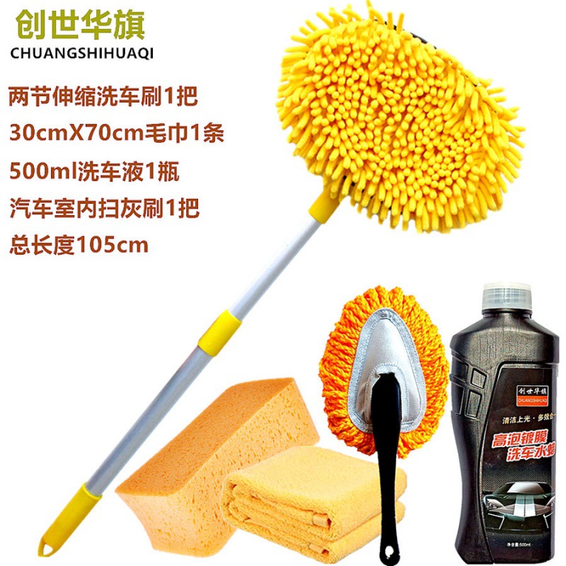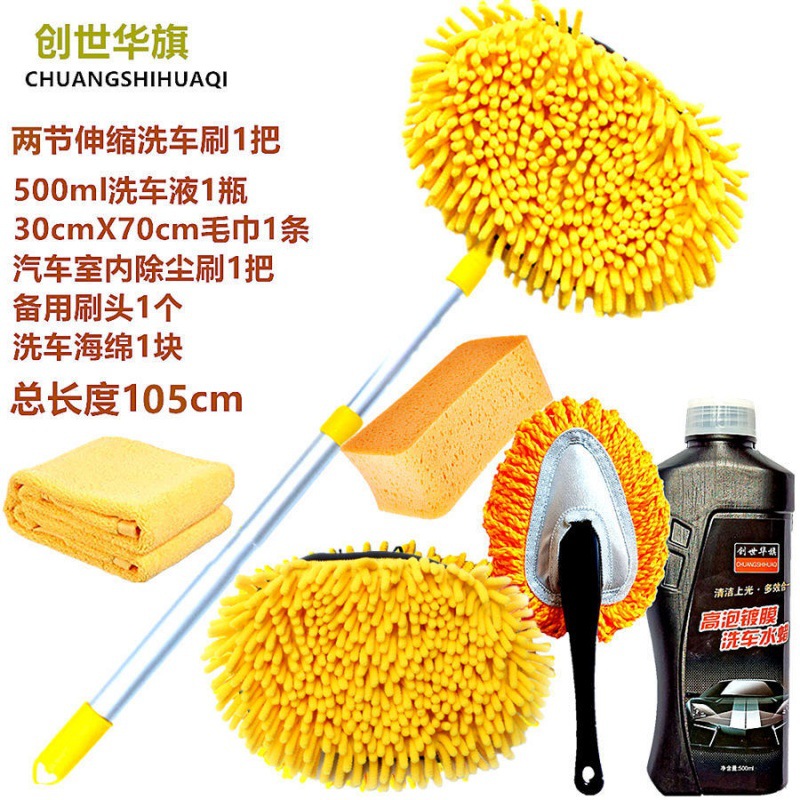 • 셔닐 차 브러시 + 세차액 + 스폰지 + 작은 브러시 + 타월 * 2 개의 텔레스코픽 셔닐 실 [스테인리스 막대 걸레]]