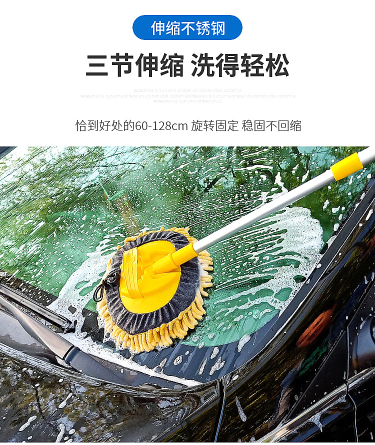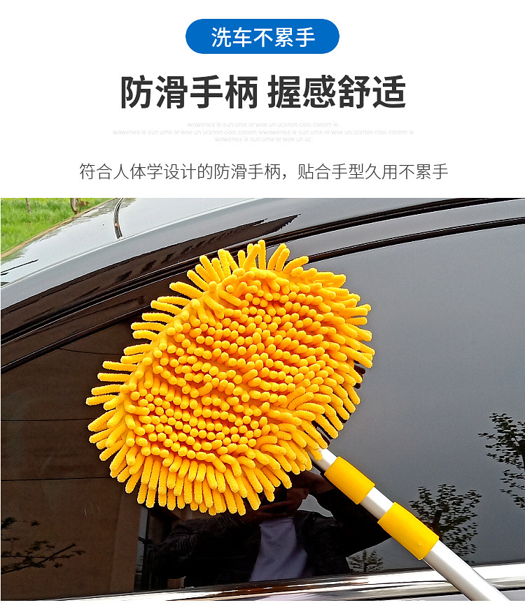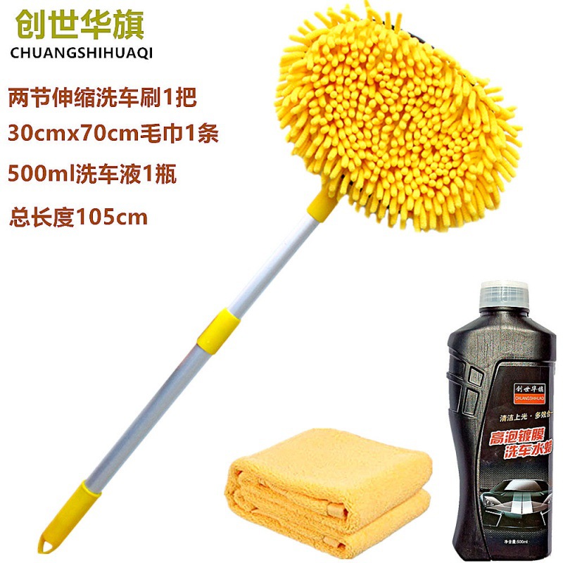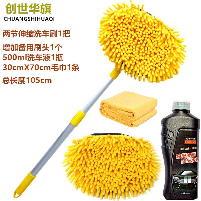 • 셔닐 세차 브러시 + 세차액 + 카타월 * 3 개의 텔레스코픽 셔닐 실 [알루미늄 합금 막대 걸레]]