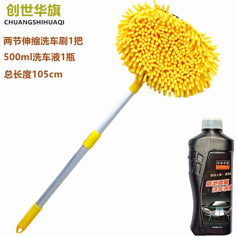 • 셔닐 벨벳 세차 브러시 + 세차액 1 병 * 2 텔레스코픽 셔닐 [스테인리스 막대 걸레]]