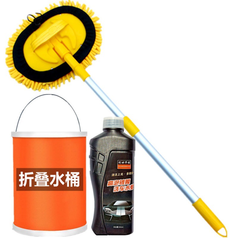 • 셔닐 세차 브러시 + 접이식 양동이 + 세차액 * 3 개의 텔레스코픽 셔닐 실 [알루미늄 합금 막대 걸레]]