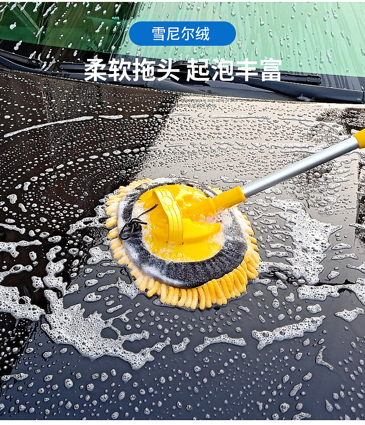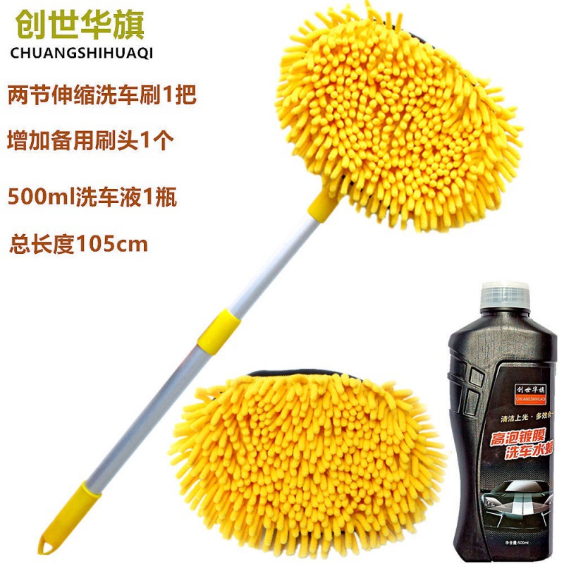 • 셔닐 벨벳 세차 브러시 + 세차 액 1 병 * 3 개 텔레스코픽 셔닐 [알루미늄 합금 막대 걸레]]