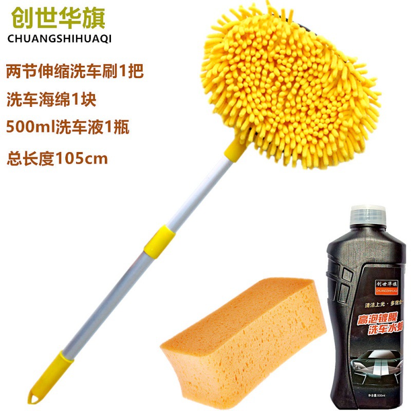 • 셔닐 세차 브러시 + 세차액 + 세차액 + 세차 스폰지 * 2 개의 텔레스코픽 셔닐 [스테인리스 막대 걸레]]