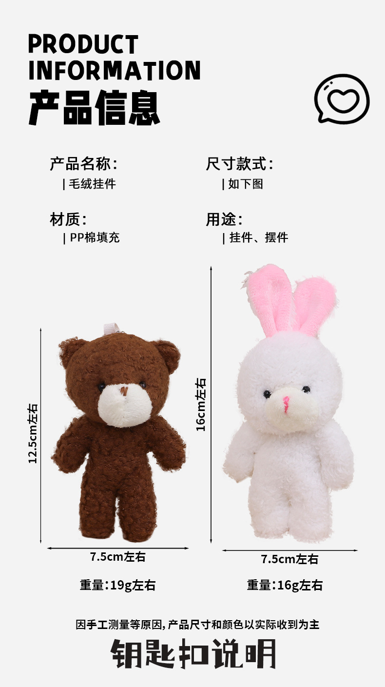 귀여운 홍당무 결합 테디 베어 열쇠 고리 가방 펜던트 토끼 인형 봉제 곰 펜던트 도매