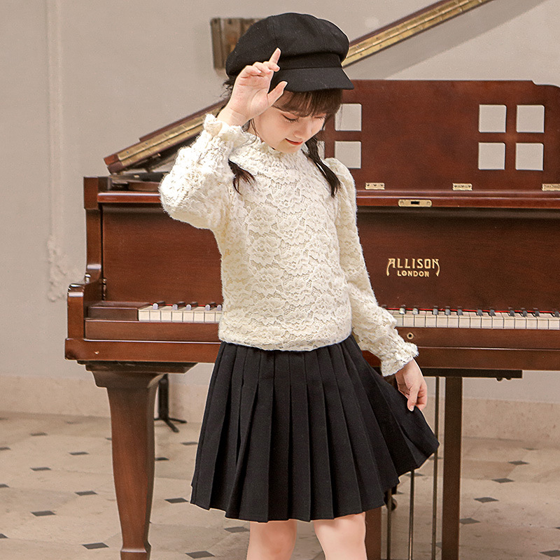 두꺼운 레이스 긴팔 이너웨어, 인형 칼라 반팔 흰색 상의, 여아용 기모 안감, 두꺼운 기모 안감스토어 가기