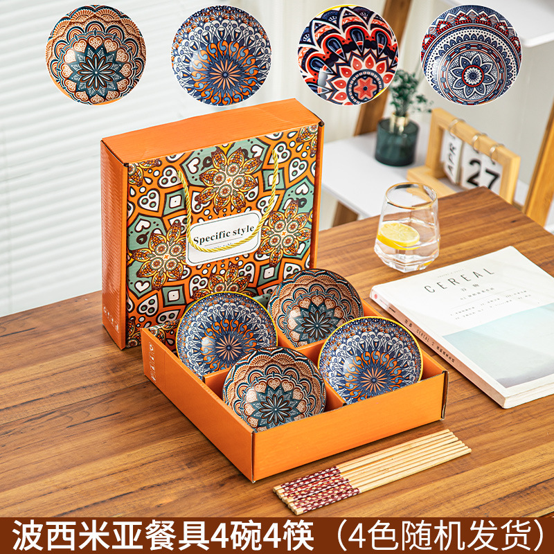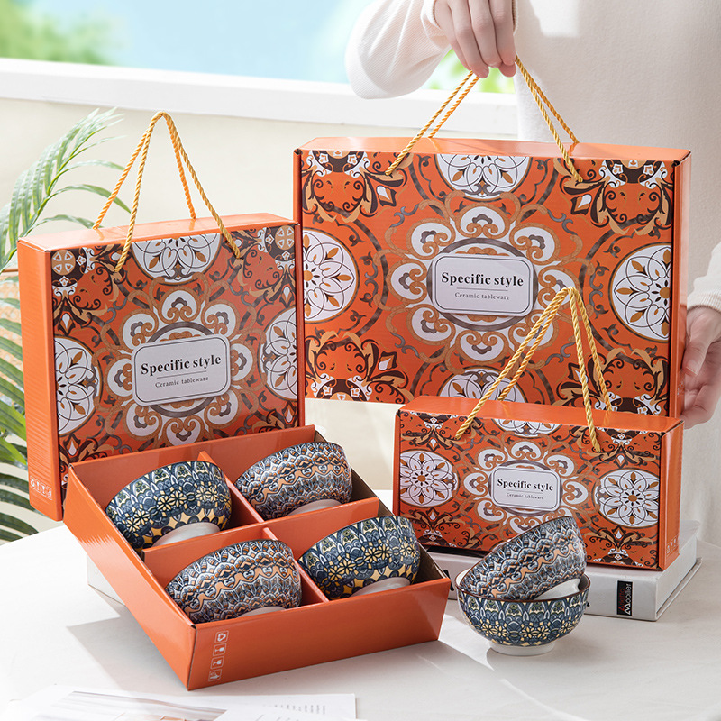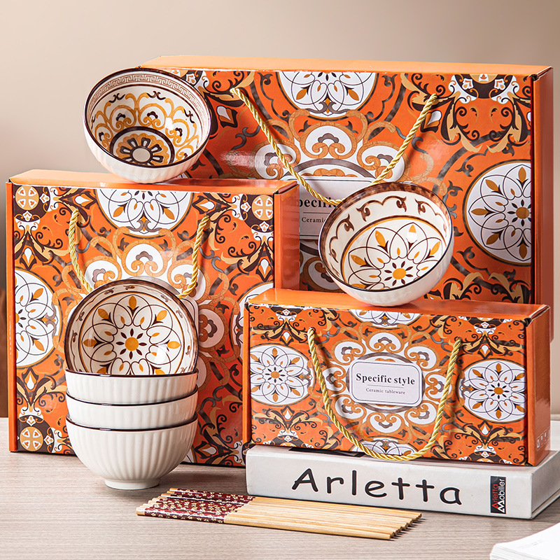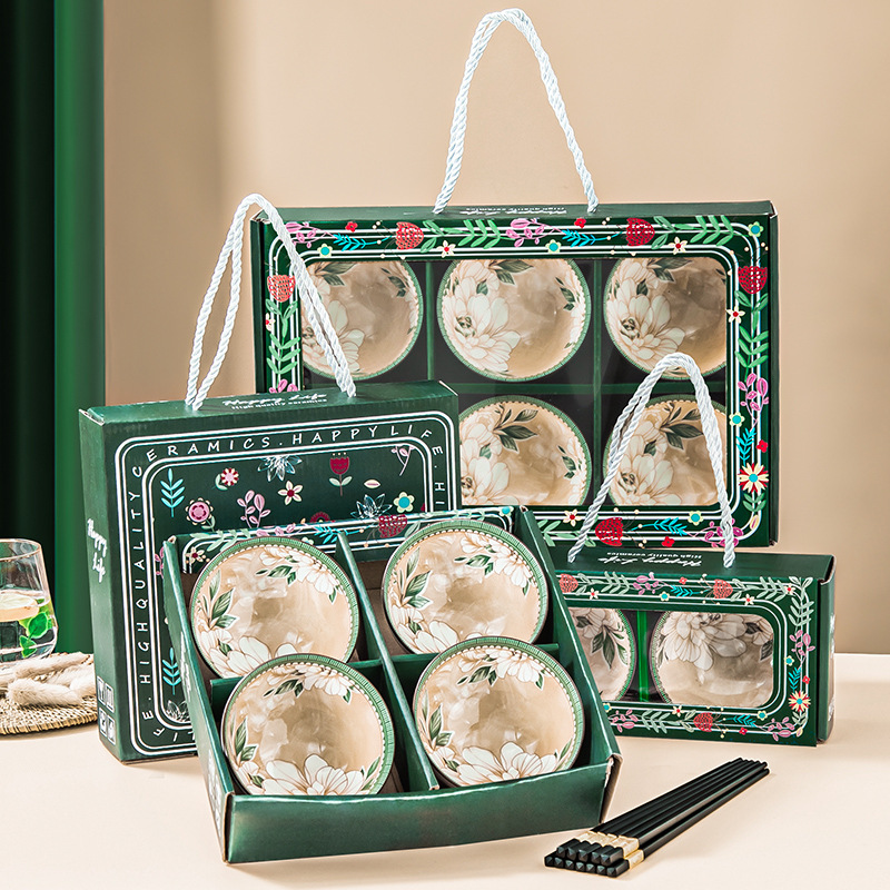 • 복고풍 꽃 그릇과 젓가락 세트 선물 상자