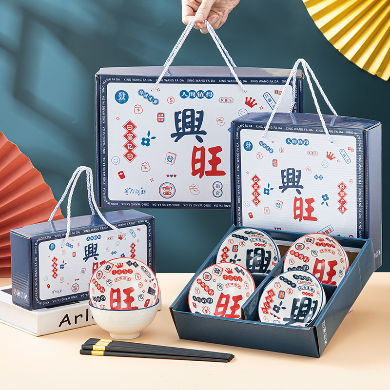 • Xingwang 그릇과 젓가락 세트-선물 상자
