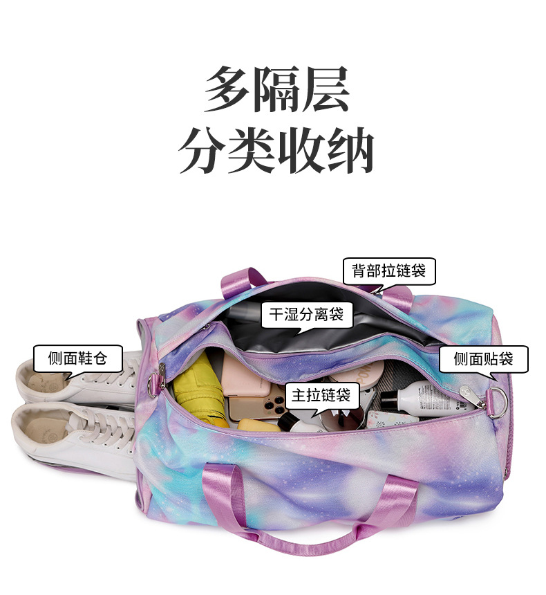 국경 간 제조업체 도매 여행 가방 여성용 대용량 방수 그래피티 프린트 수영 피트니스 스포츠 가방 여행 가방스토어 가기