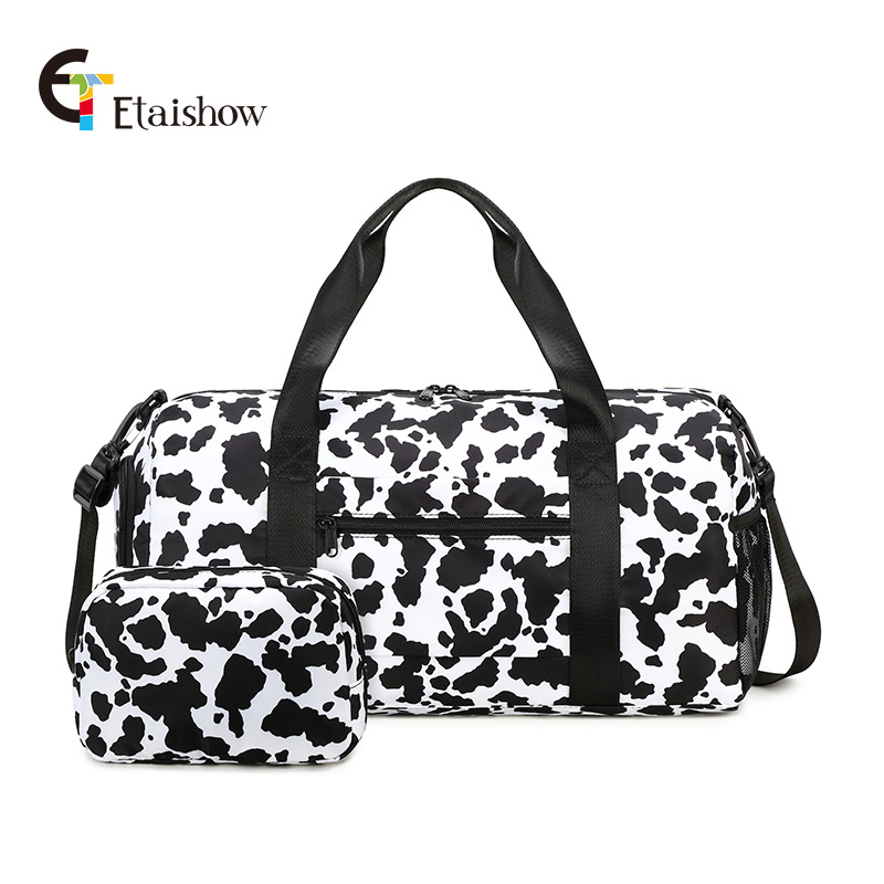 국경 간 제조업체 도매 여행 가방 여성용 대용량 방수 그래피티 프린트 수영 피트니스 스포츠 가방 여행 가방