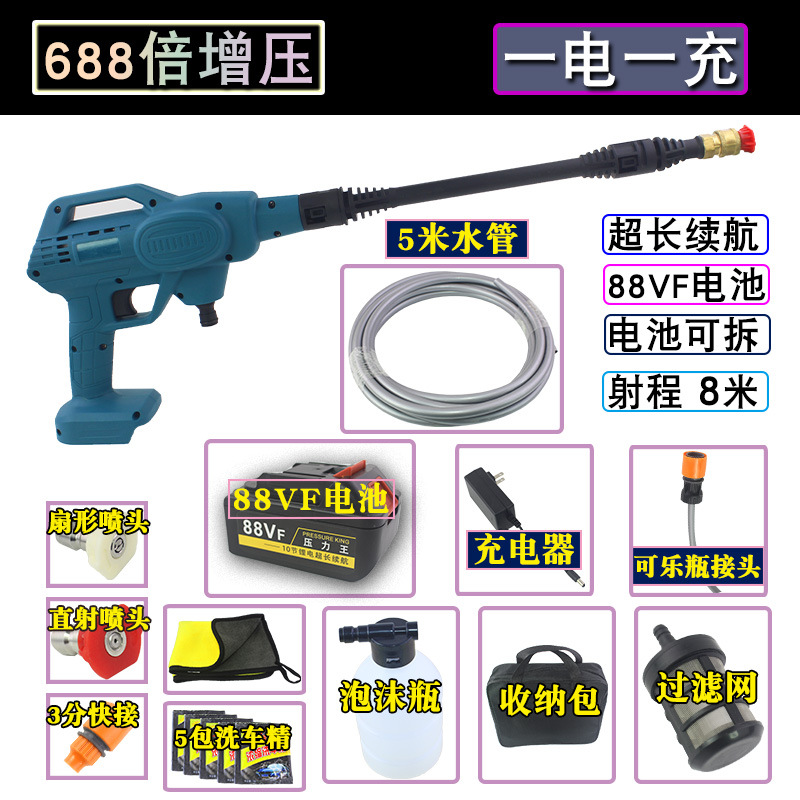 원형 전기 물총 리튬 배터리 물총 무선 편리한 연결 오래 지속되는 고전압 물 꽃 세척 정원