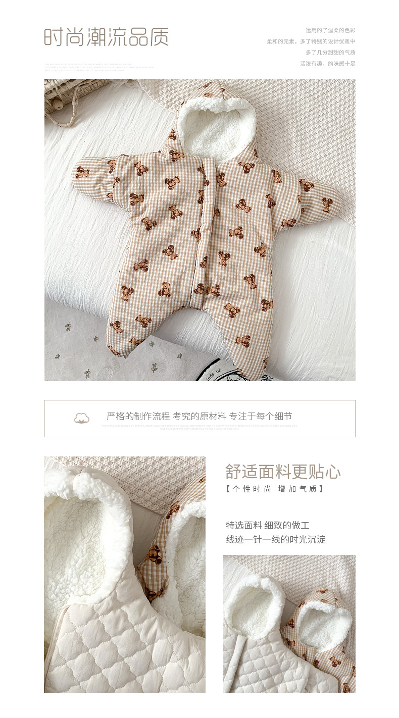 한국식 아기 옷 겨울 면 패딩 점프 슈트 면 패딩 재킷 다리가있는 아기 옷 겨울 두꺼운 가방 옷을 안기 위해 외출하기위한 방귀 옷스토어 가기