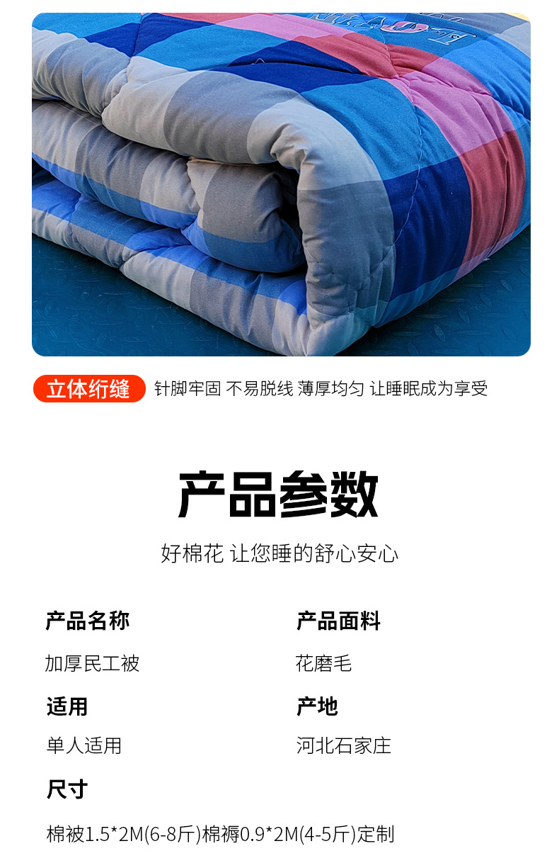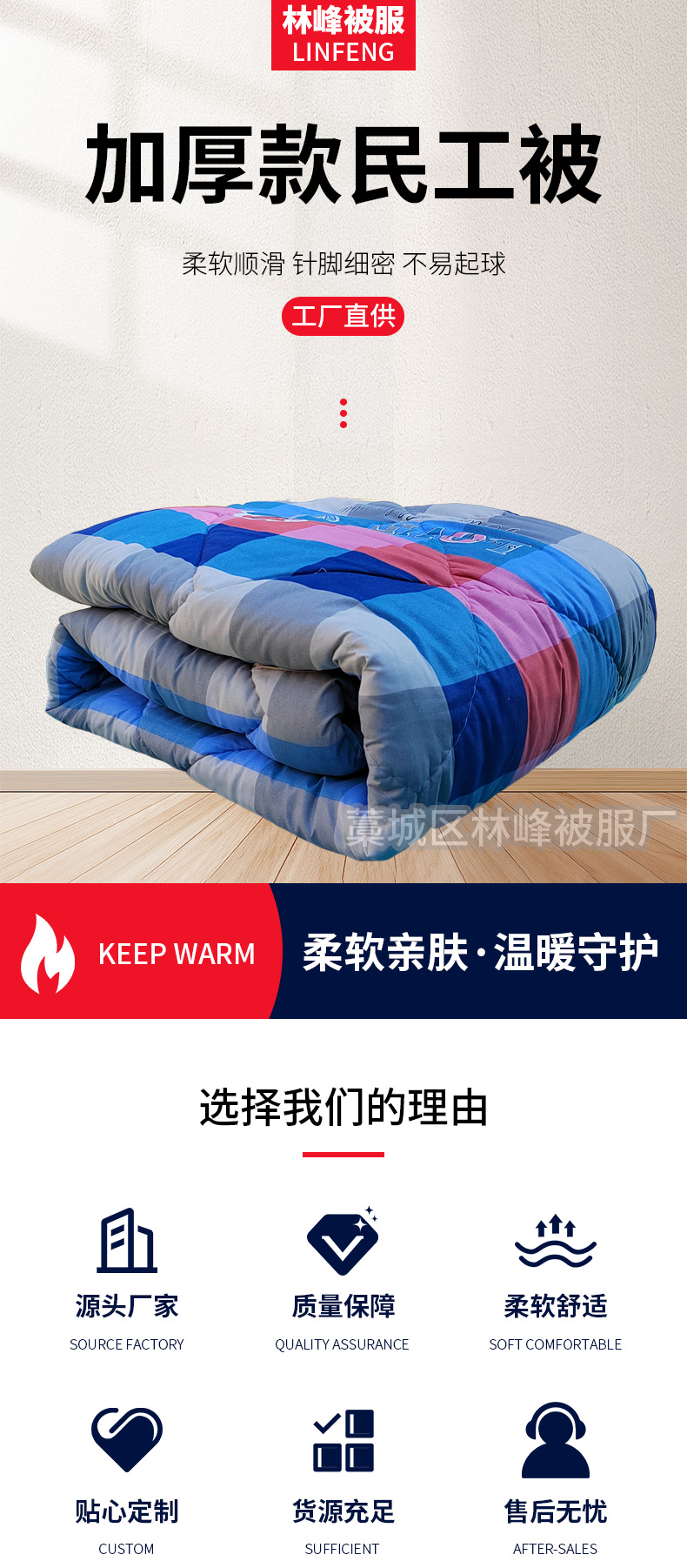 도매 건설 현장용 면 이불 기숙사용 이불 싱글 두꺼운 겨울 노동 보호용 이불 순면 이불 따뜻한 노동자용 이불