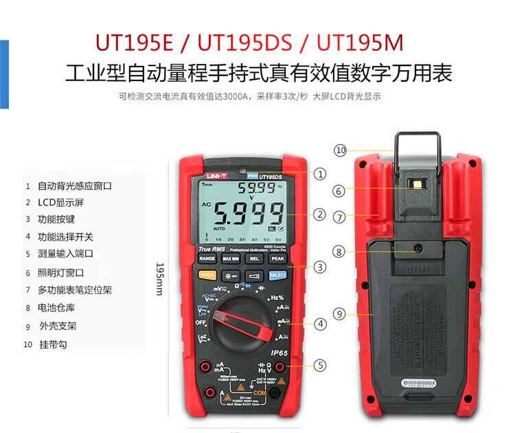 UNI-T Uleid UT195E 디지털 멀티 미터 산업 등급 지능형 전기 다목적 범용 미터 진정한 유효 값