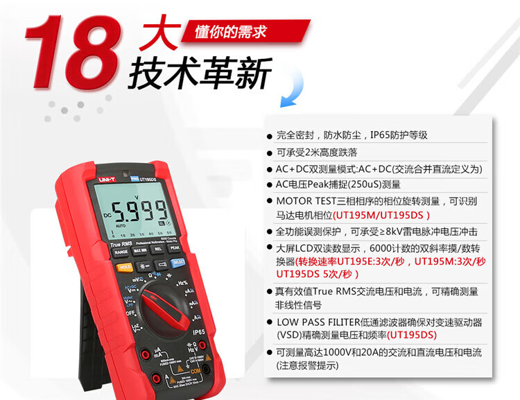 UNI-T Uleid UT195E 디지털 멀티 미터 산업 등급 지능형 전기 다목적 범용 미터 진정한 유효 값스토어 가기