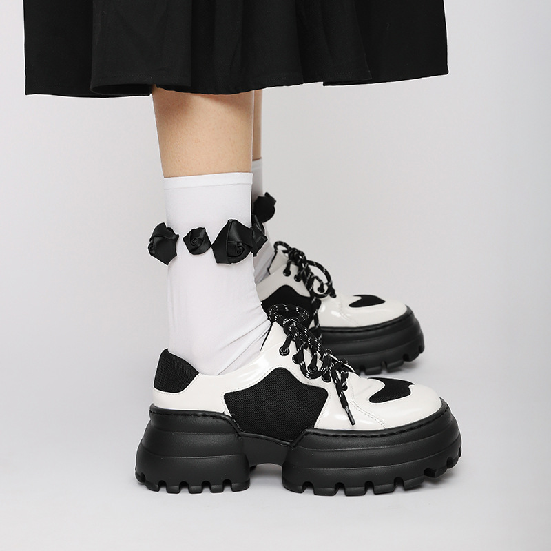2023 봄과 가을 스퀘어 토 플랫폼 가죽 신발 여성의 일본식 대학 스타일 복고풍 단층 신발 독특한 디자인 스포츠 엄지 발가락 신발