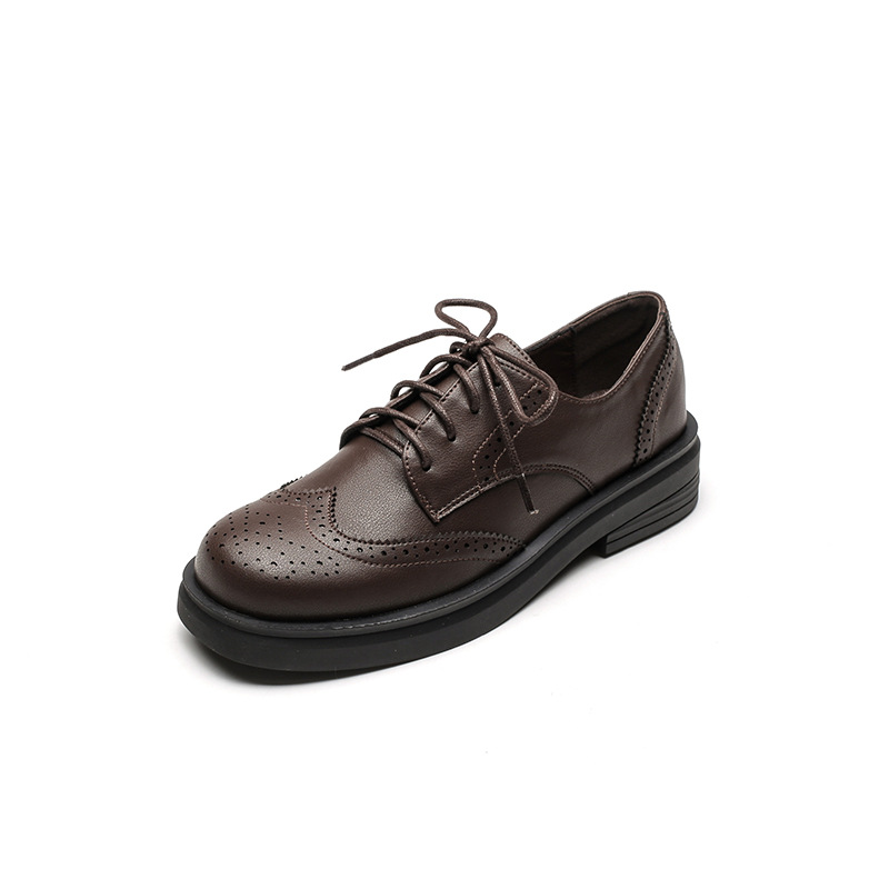 여성용 천연 가죽 작은 가죽 신발 영국 스타일 2024 봄 가을 신상 부드러운 가죽 다용도 플랫 레트로 브로그 슈즈스토어 가기