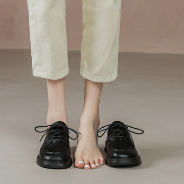 여성용 천연 가죽 작은 가죽 신발 영국 스타일 2024 봄 가을 신상 부드러운 가죽 다용도 플랫 레트로 브로그 슈즈