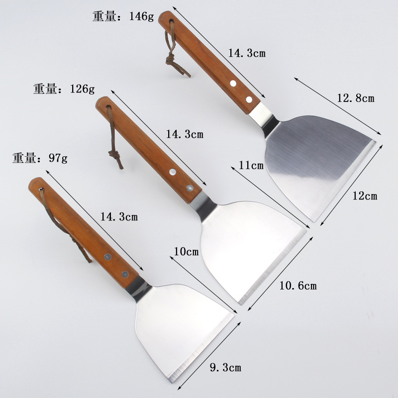 스테인레스 스틸 나무 손잡이 피자 삽 요리 Teppanyaki 삽 팬케이크 삽 팬케이크 삽 스테이크 삽 핸드 케이크 도구스토어 가기