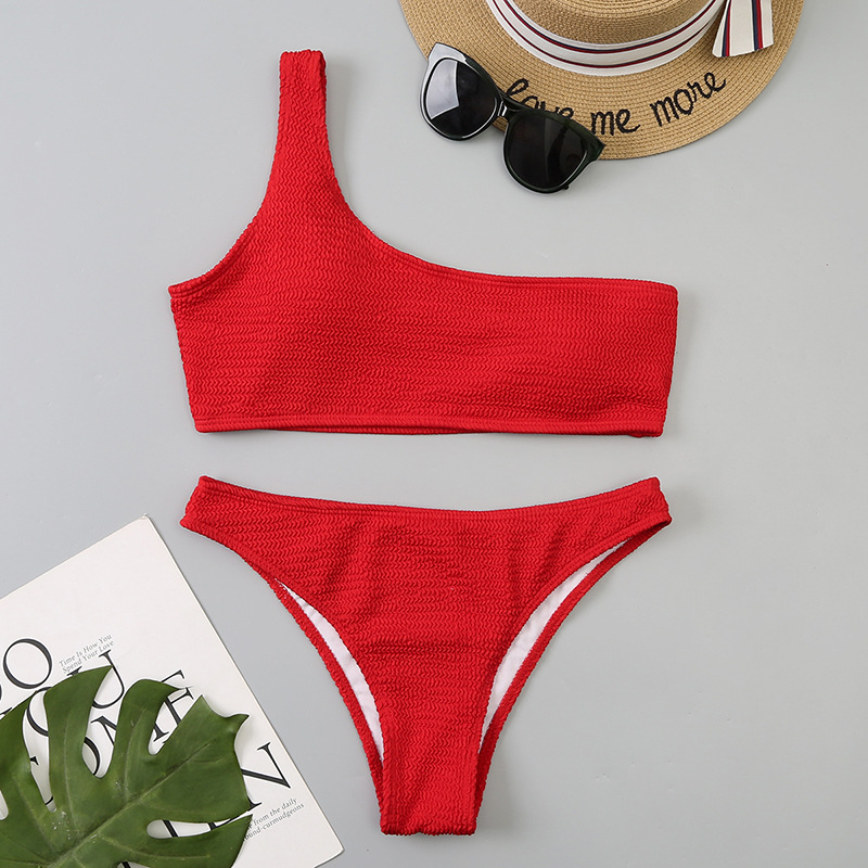 2022 여성 수영복 유럽 및 미국 무역 단색 비키니 물결무늬 원숄더 수영복 비키니 유럽 및 미국 스타일