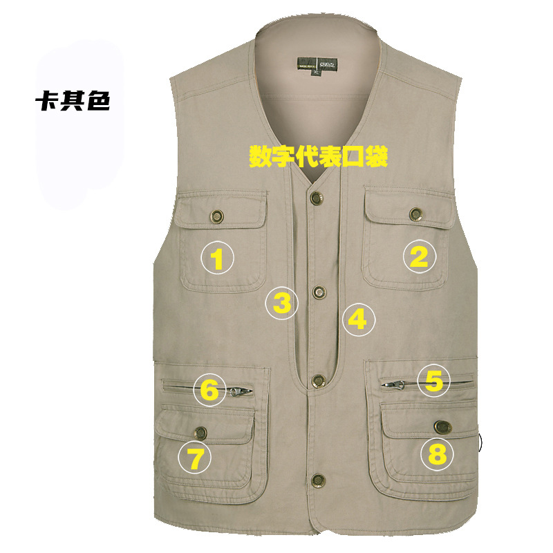 순면 세척 남성 조끼 숨겨진 버클 멀티 포켓 V-넥 조끼 사진 낚시 도구 조끼 노동 보호 캐주얼 재킷스토어 가기