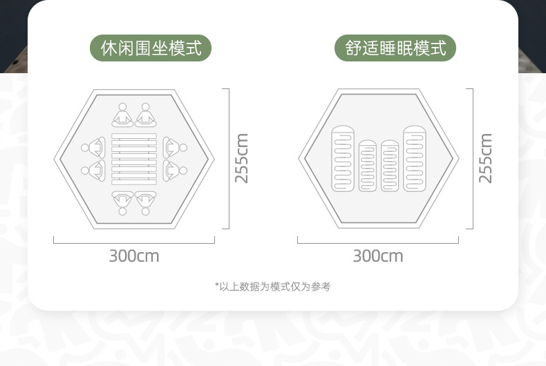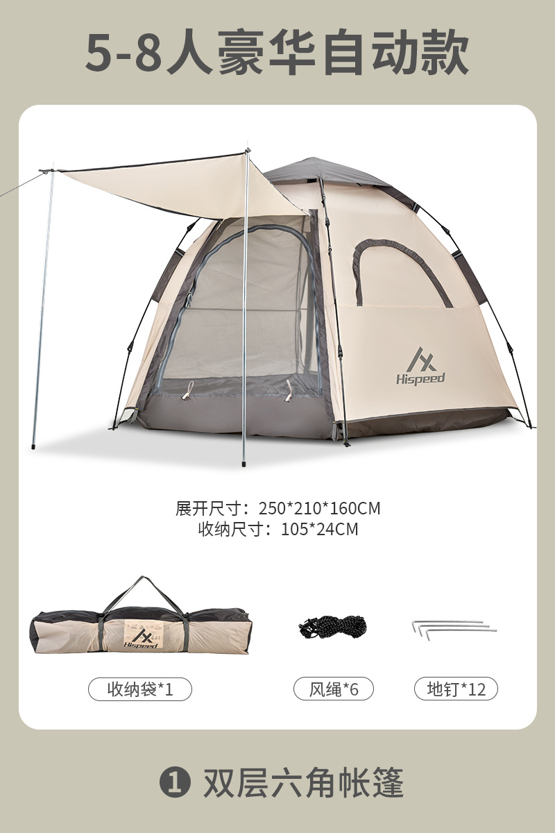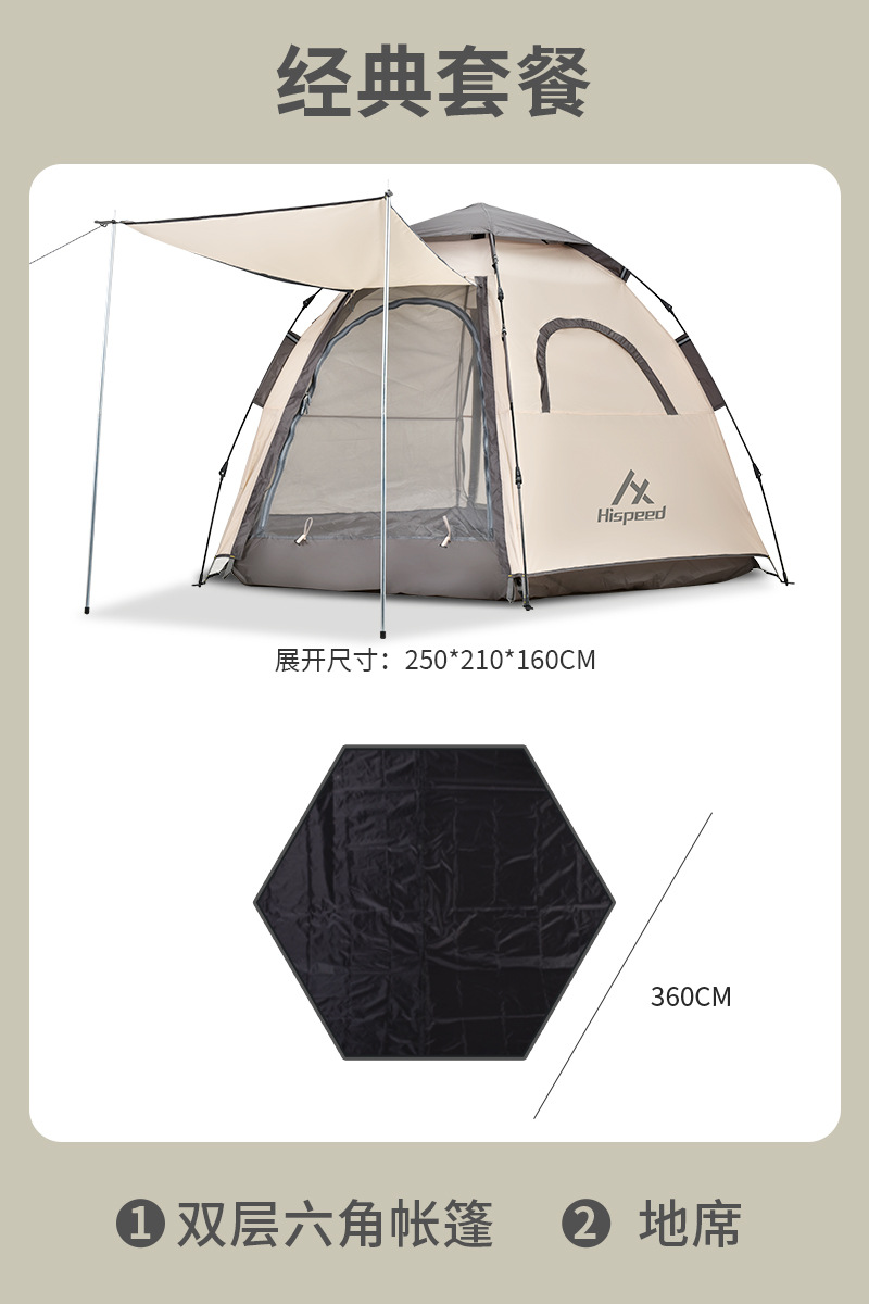 • 육각형 바닥 매트가있는 더블 데크 아이보리 텐트