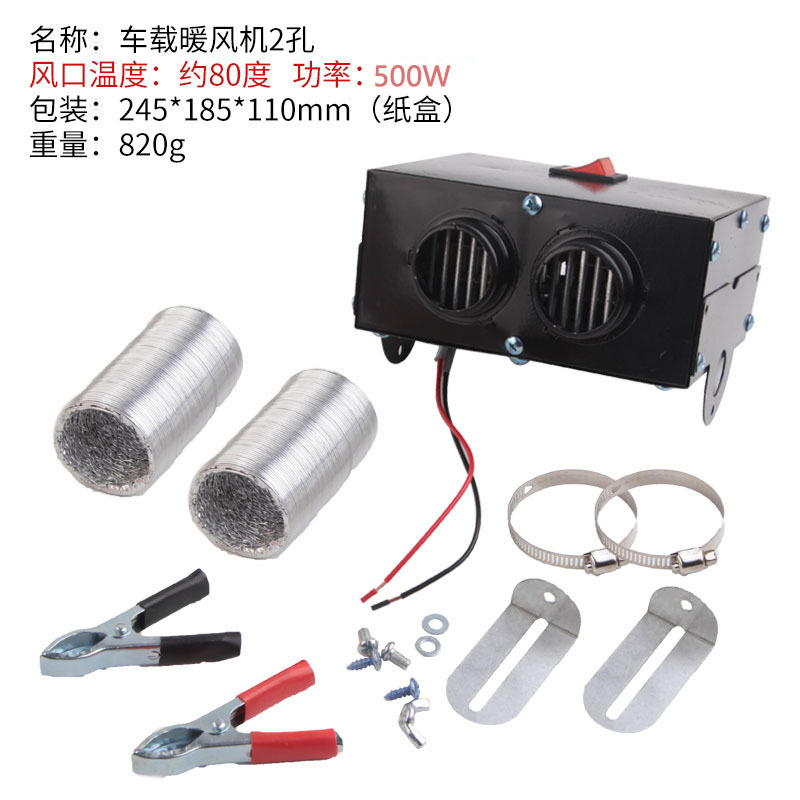 2 홀 자동차 히터 12V 500W 자동차 여행 난방 따뜻한 온도 조절기 팬 제상 및 김서림 방지