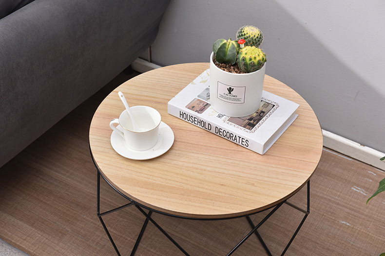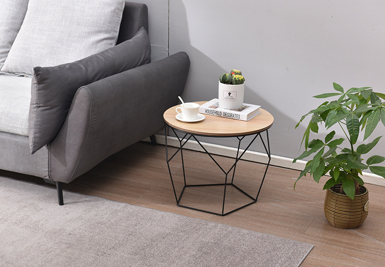 아마존 도매 사무실 기하학적 창조적 인 차 테이블 철 프레임 나무 공예 작은 커피 테이블 거실 장식 작은 원형 테이블스토어 가기
