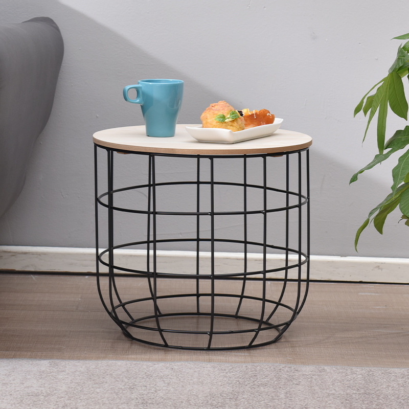 아마존 도매 사무실 기하학적 창조적 인 차 테이블 철 프레임 나무 공예 작은 커피 테이블 거실 장식 작은 원형 테이블