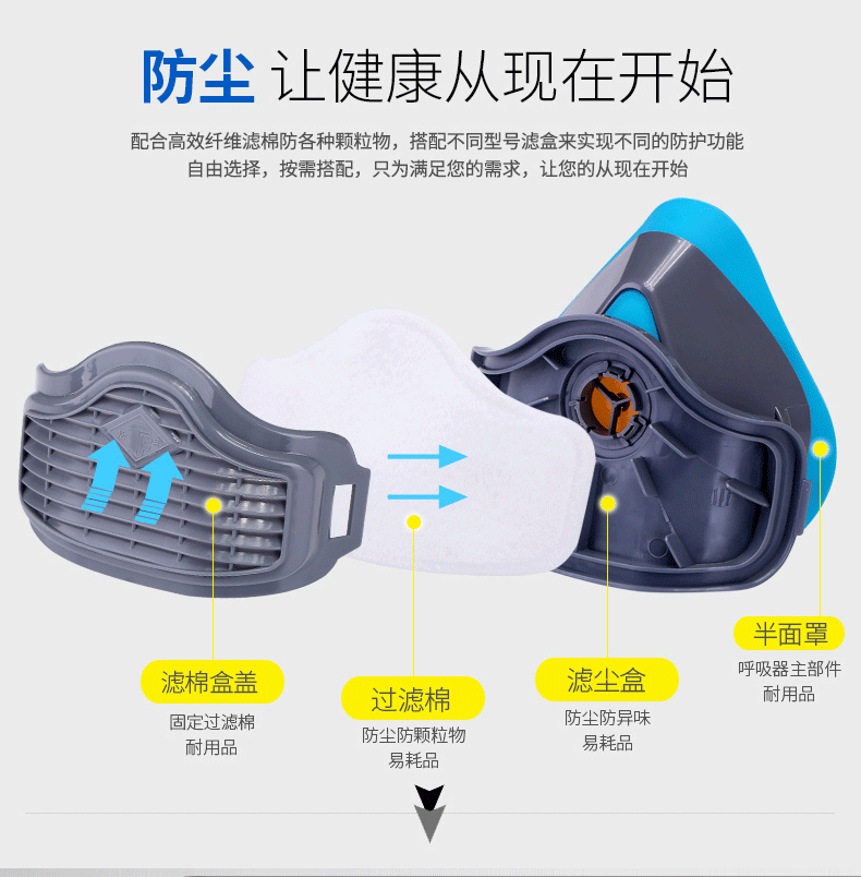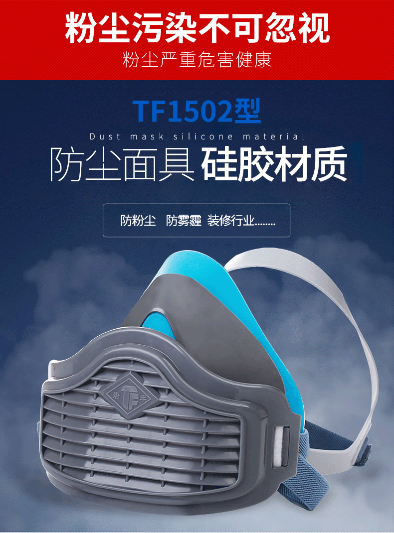 Tangfeng 1502 블루 더스트 마스크 통기성 남성용 탄광 안티 산업 먼지 장식 마스크 빨