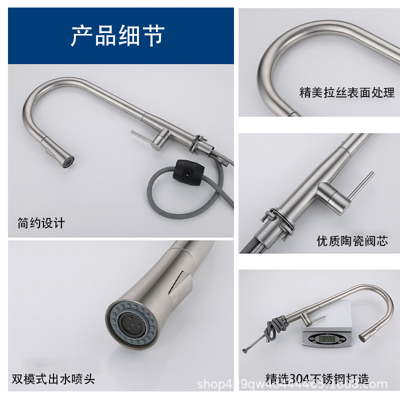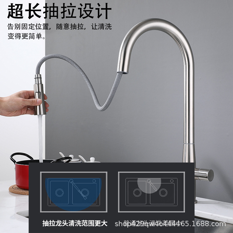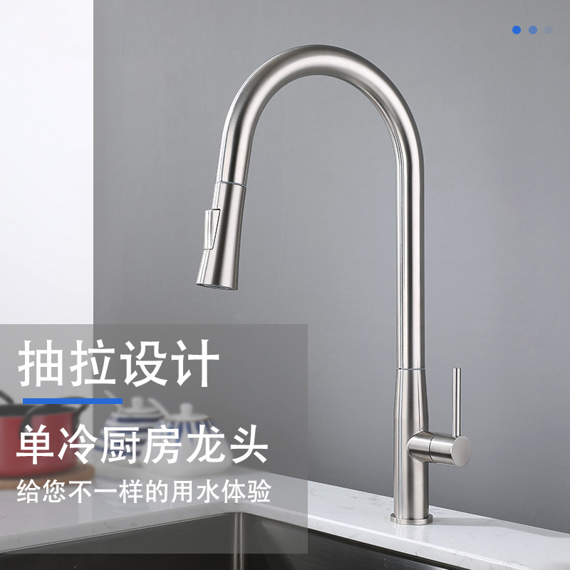 공장 직공급 주방 스테인레스 스틸 싱글 콜드 수도꼭지 풀 아웃 접시 분지 싱글 콜드 텔레스코픽 싱크 풀 아웃스토어 가기