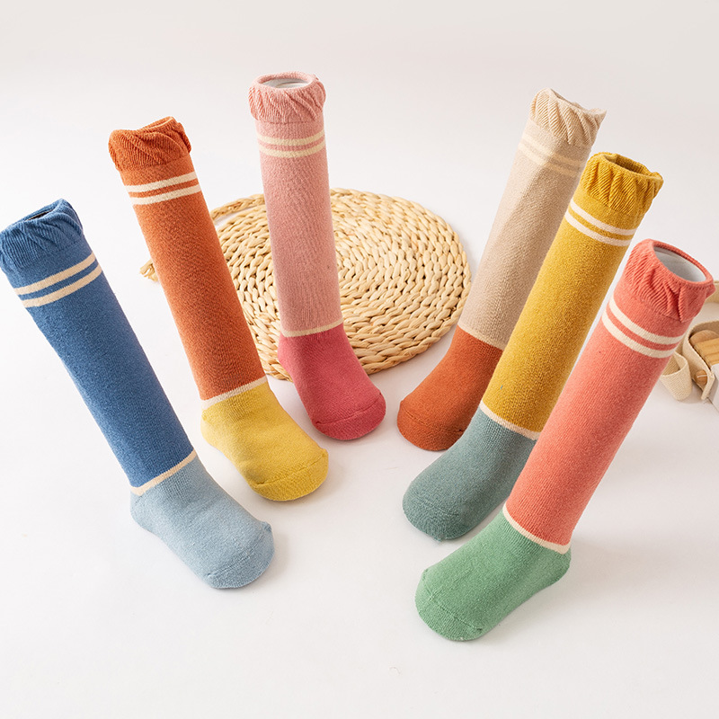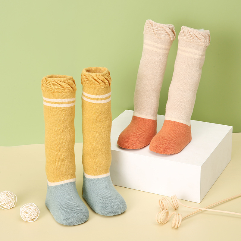 아기 바닥 양말 신상 가을 겨울 두꺼운 아기 롱 양말 어린이 테리 실내 점착 미끄럼 방지 걸음마 양말