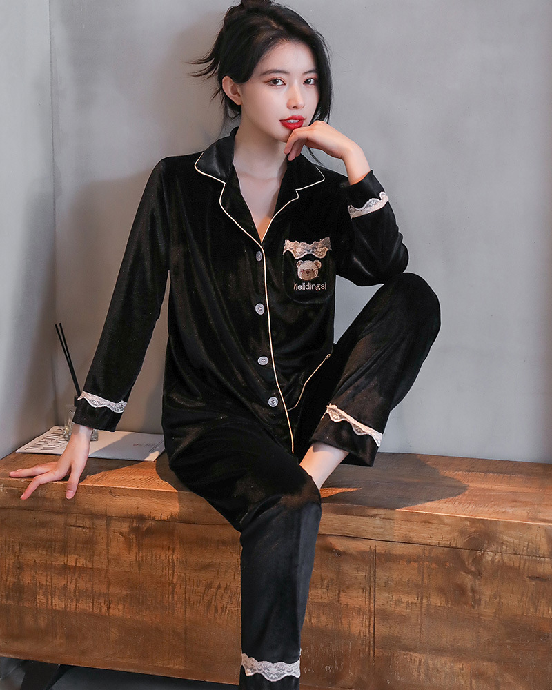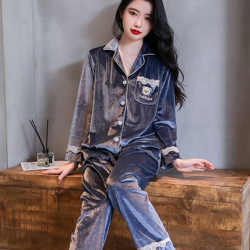 골든 벨벳 잠옷 여성의 섹시한 인터넷 인기 2021 봄과 가을 새로운 투피스 세트 긴팔 겨울 가정 의류스토어 가기