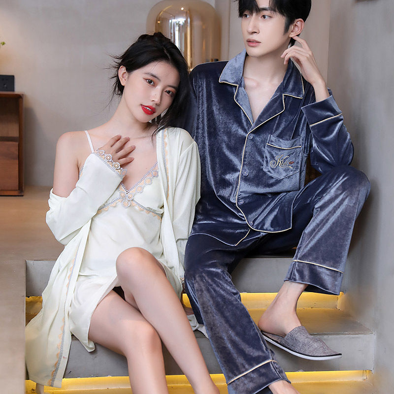 공장 도매 가을과 겨울 연인 잠옷 여자의 가정 옷 세트 남자의 긴 소매 벨벳 플러스 사이즈스토어 가기
