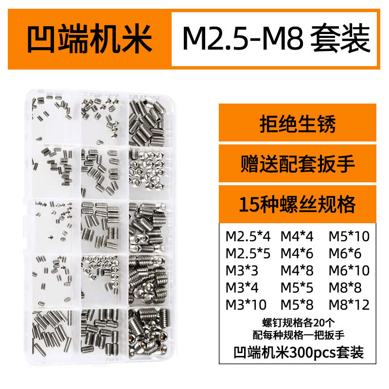 박스형 기계 미터 [200/240/300PC] 304 스테인리스 육각 소켓 세트 기계 미터 나사 M3-M8스토어 가기
