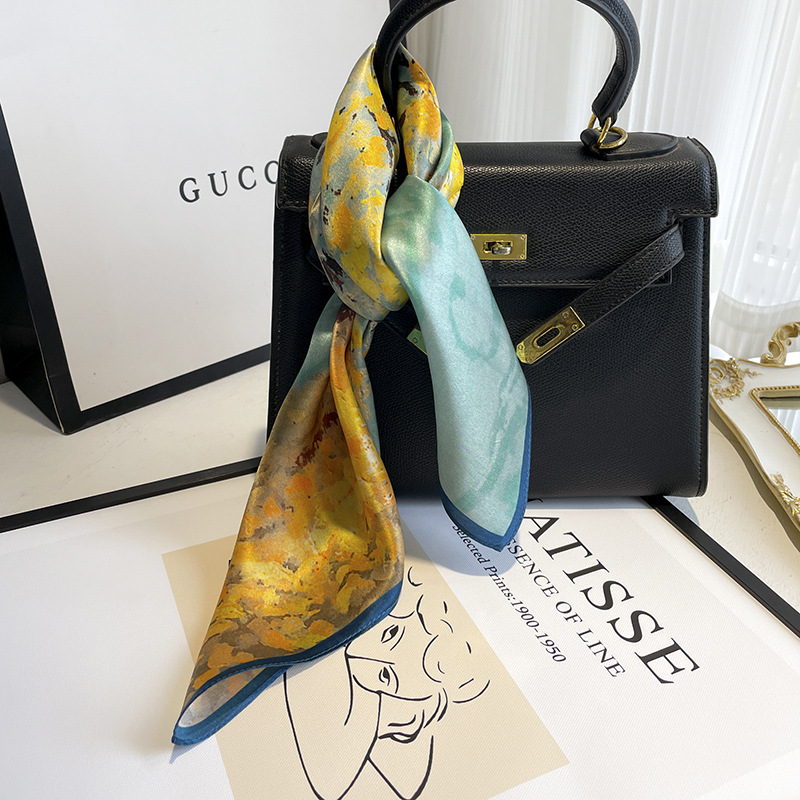 새로운 스타일 실크 스카프 작은 사각 스카프 블루 뽕나무 실크 스카프 여성의 모든 일치 봄과 가을 경추 한국 작은 스카프