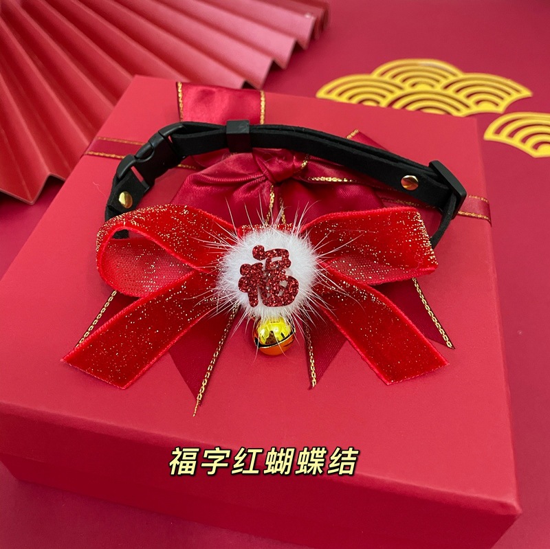 고양이 종 빨간 활 새해 목걸이 애완 동물 봄 축제 빨간 나비 넥타이 축제 보석 새끼 고양이 강아지 목걸이 도매스토어 가기