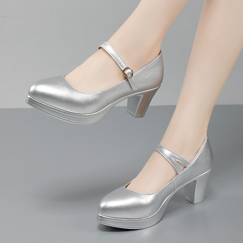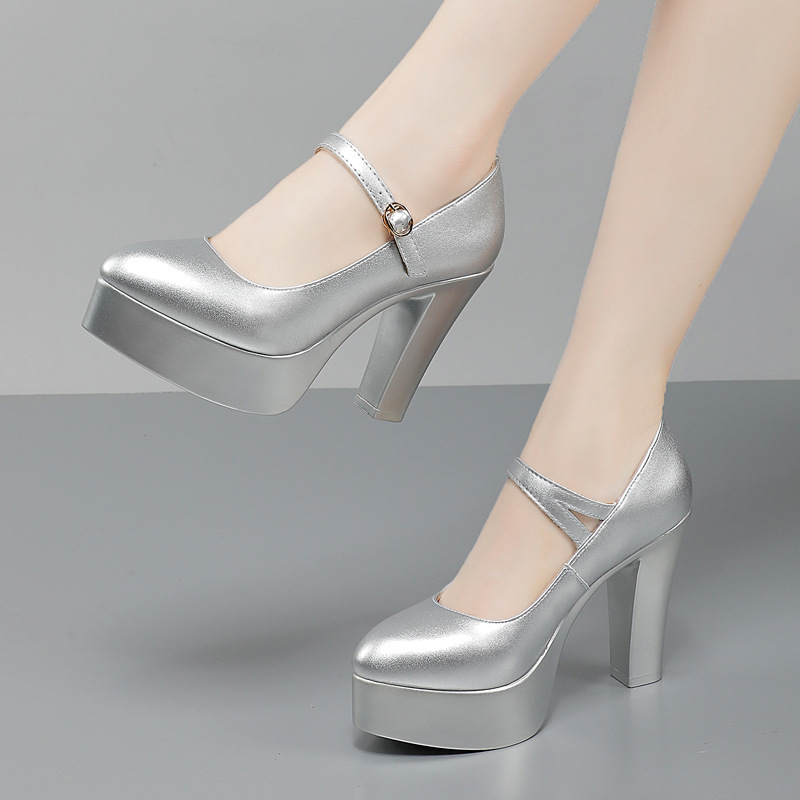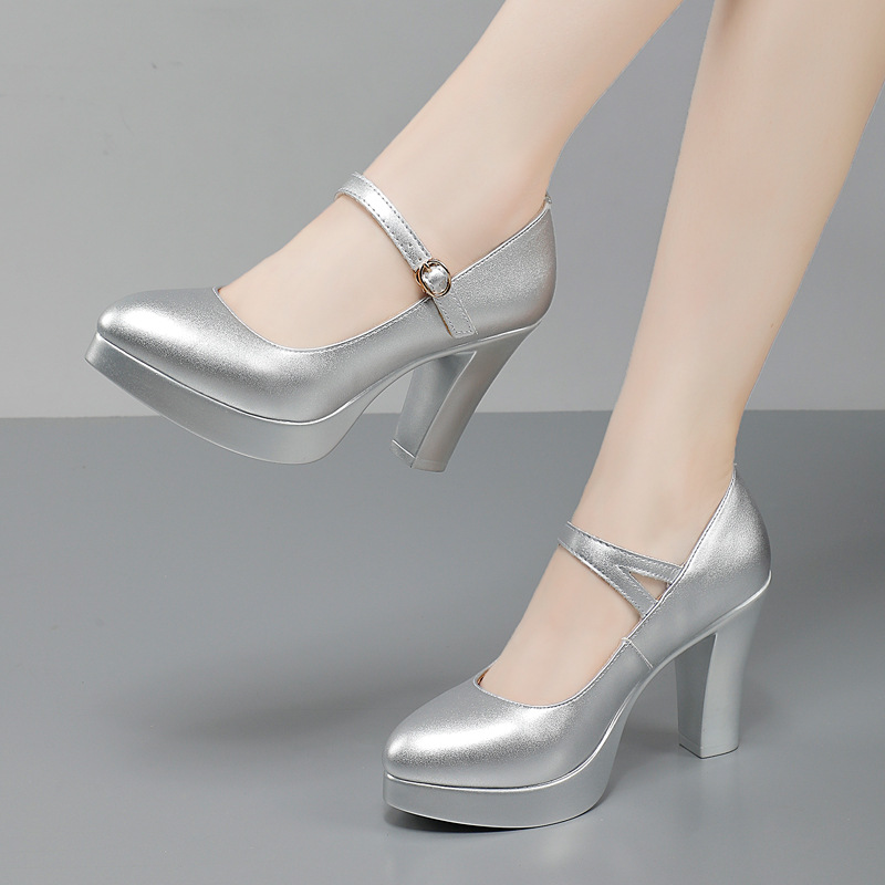 • 두꺼운 발 뒤꿈치 뾰족한 실버 11cm
